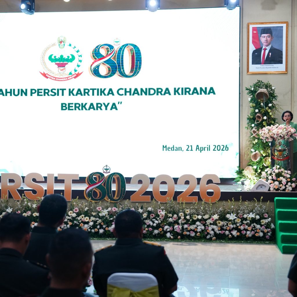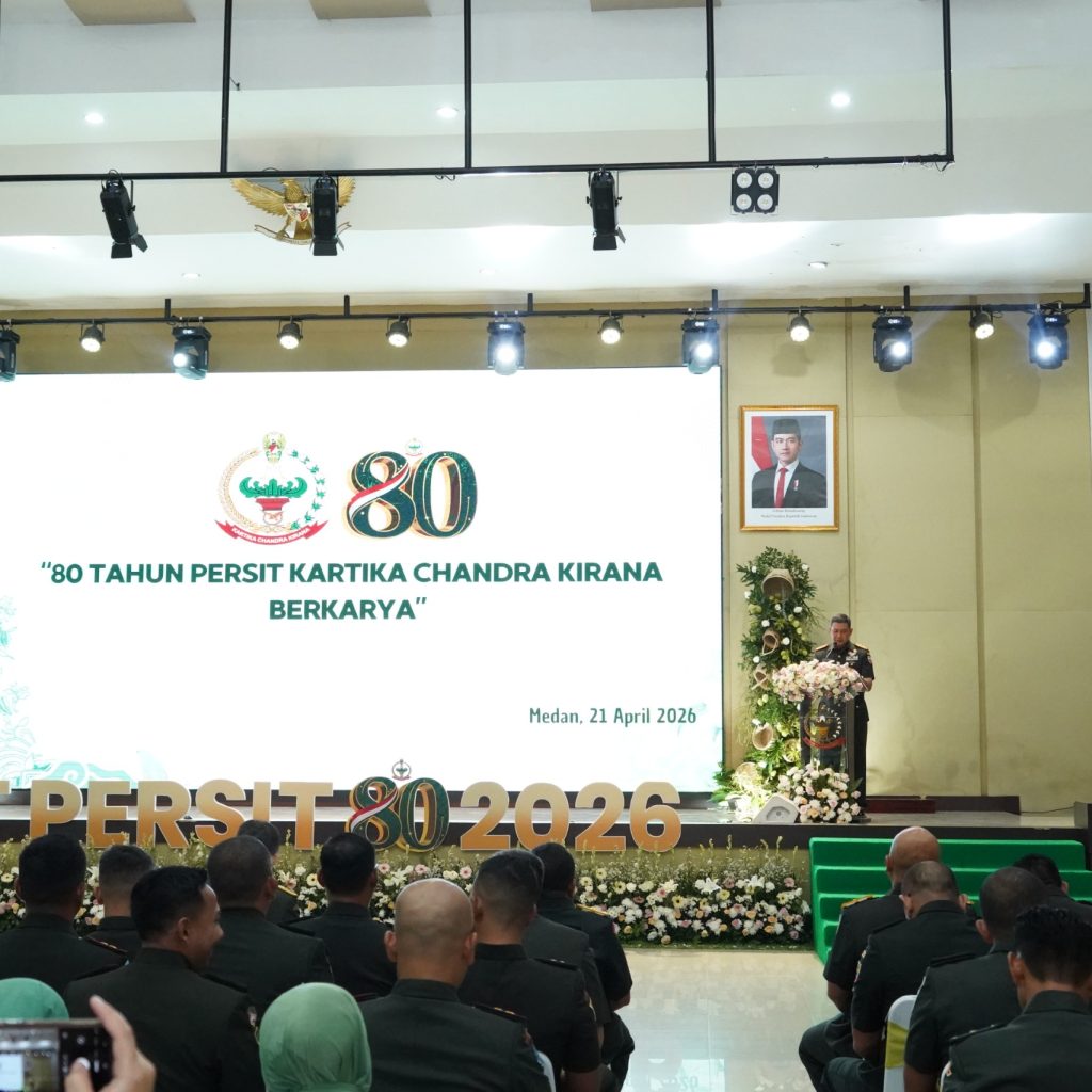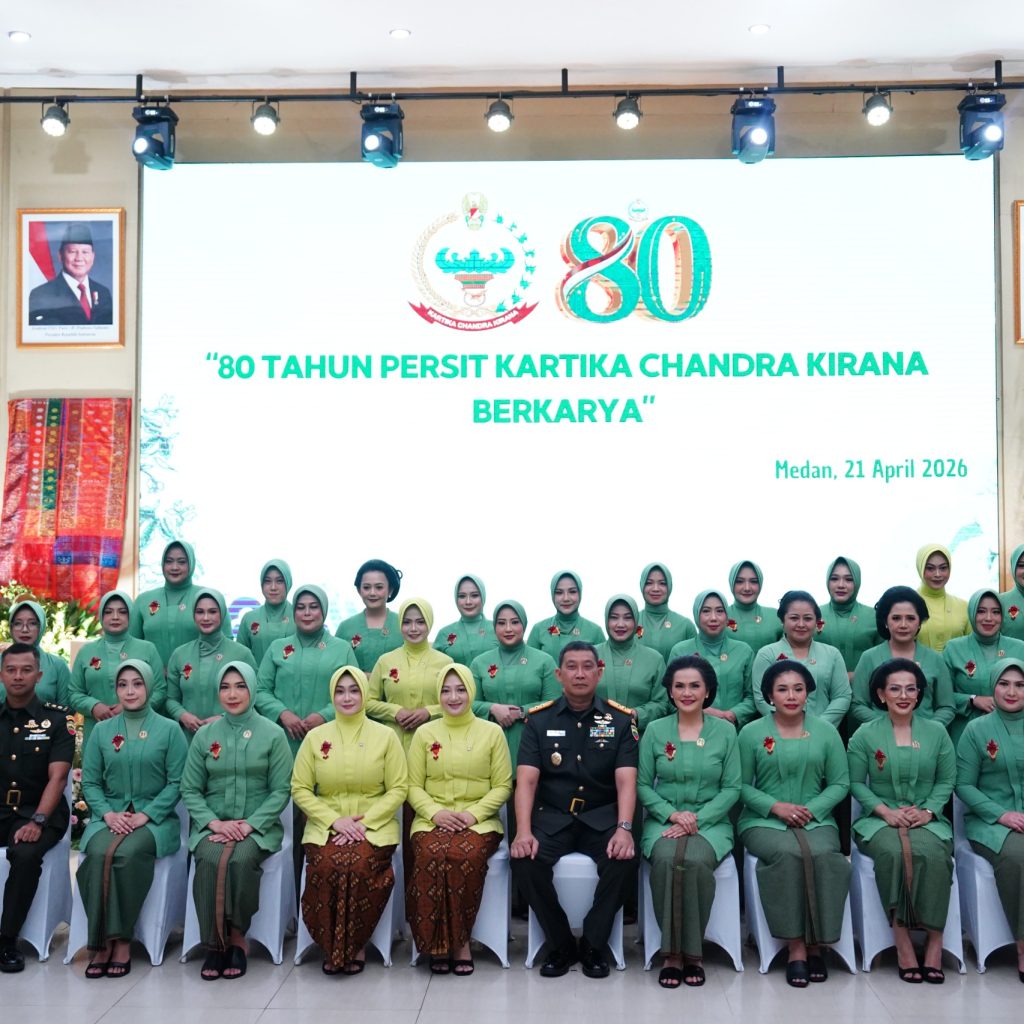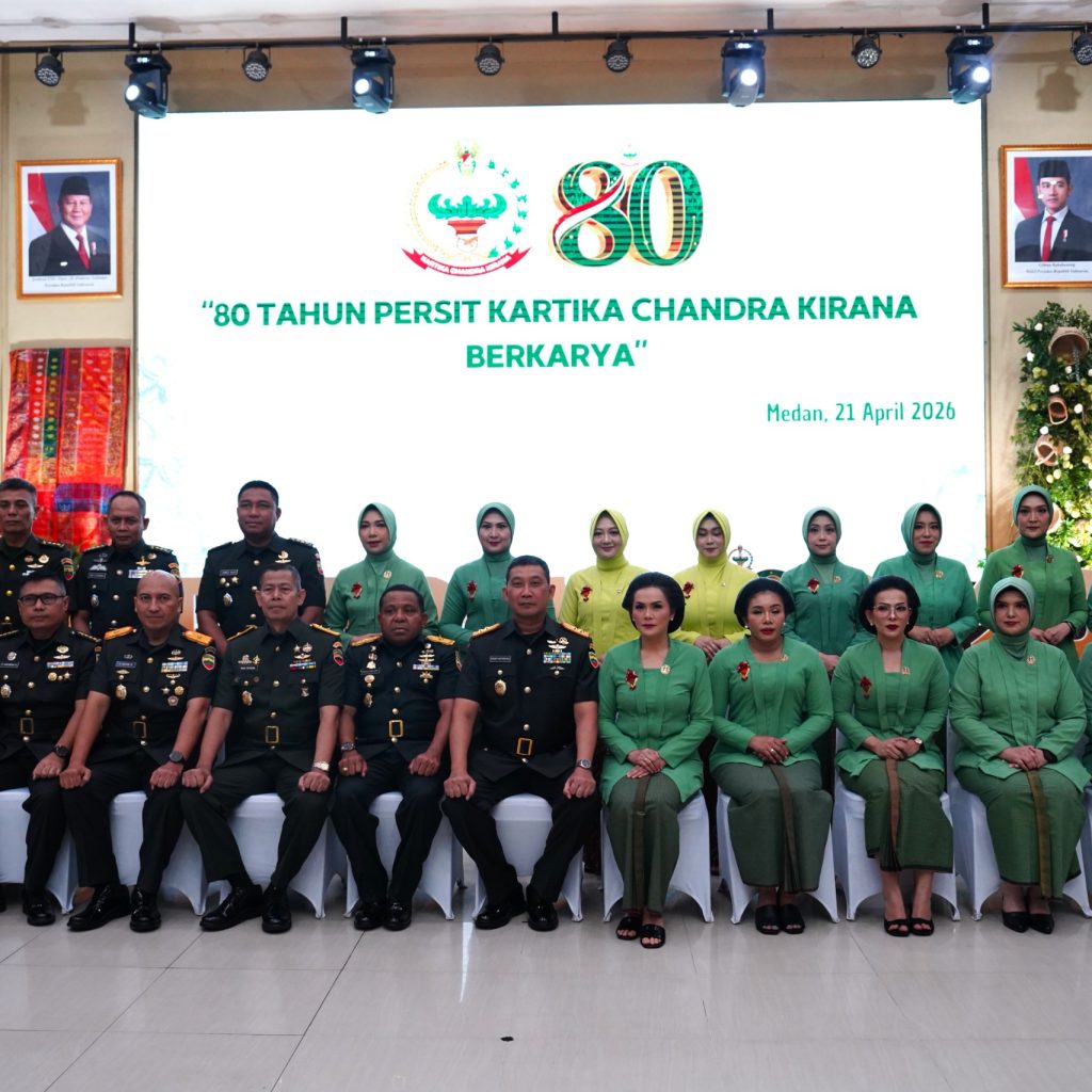 Medan – Pangdam I/Bukit Barisan Mayjen TNI Hendy Antariksa menghadiri syukuran Hari Ulang Tahun (HUT) ke-80 Persit Kartika Chandra Kirana (KCK) Tahun 2026 di Balai Prajurit Makodam I/BB, Selasa (21/4/2026). Peringatan ini menegaskan peran Persit sebagai organisasi pendamping prajurit yang aktif berkarya di berbagai bidang.