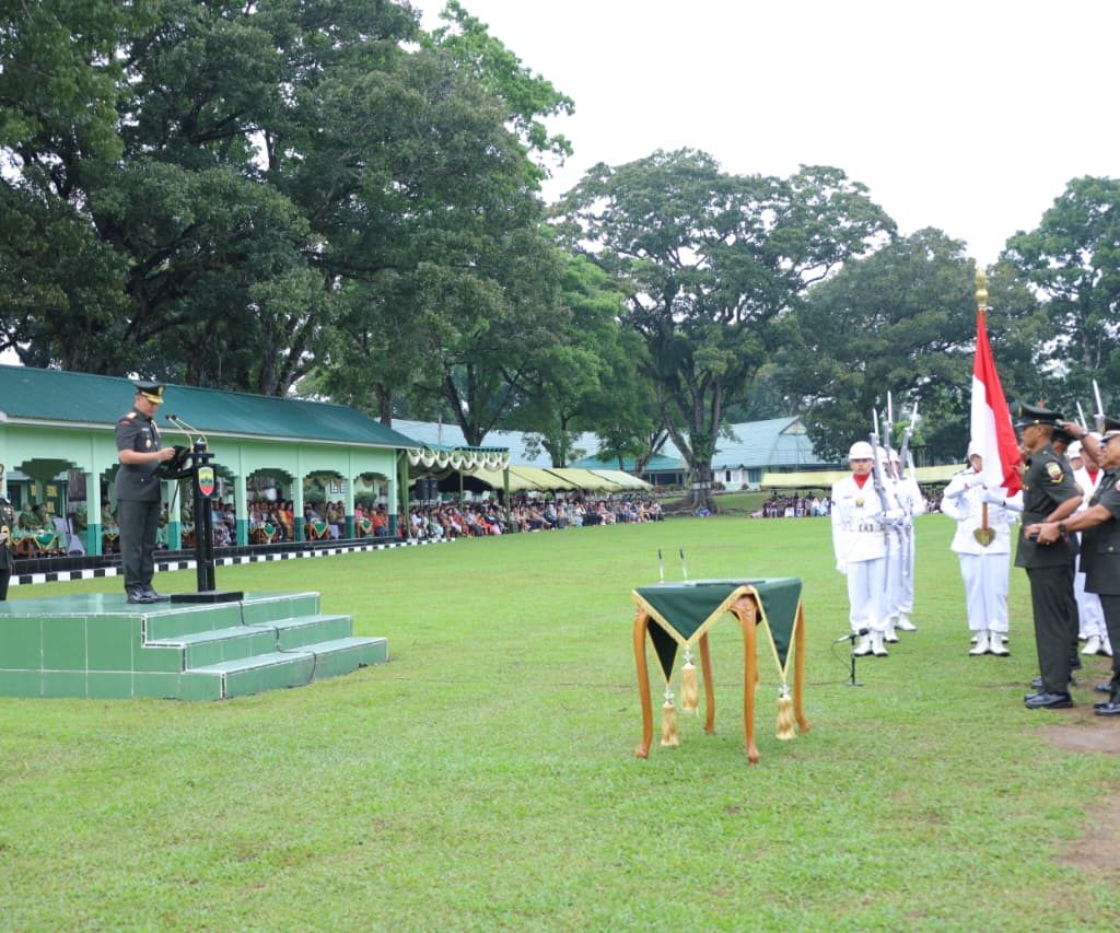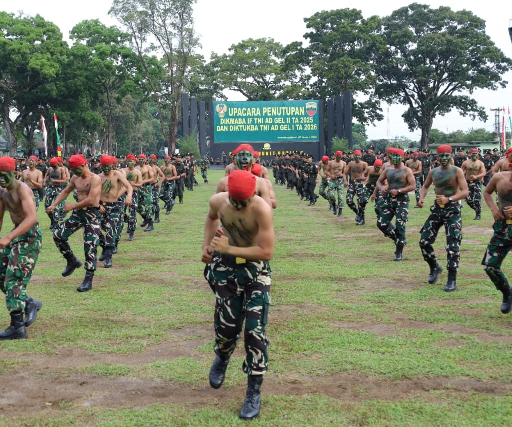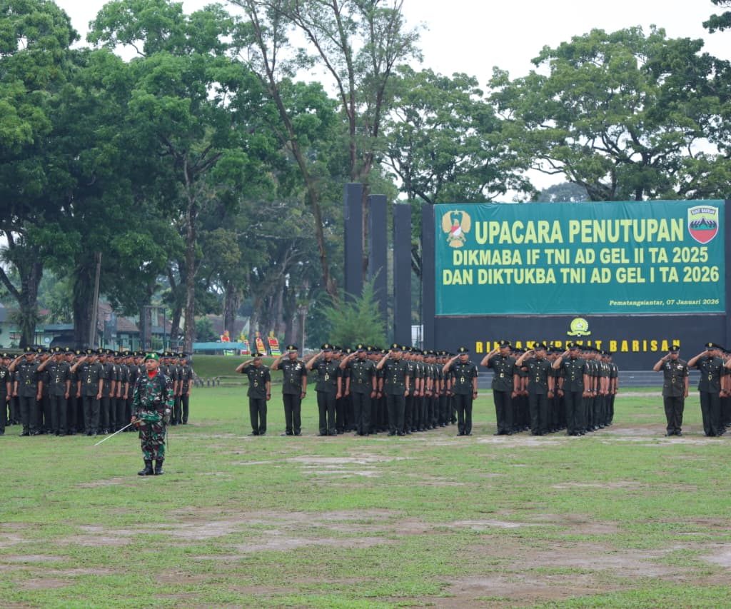Pematangsiantar – Panglima Kodam I/Bukit Barisan (Pangdam I/BB) Mayjen TNI Hendy Antariksa bertindak sebagai Inspektur upacara pada penutupan Pendidikan Pertama Bintara (Dikmaba) Infanteri TNI AD Gelombang II dan Pendidikan Pembentukan Bintara (Diktukba) TNI AD Gelombang I Tahun Anggaran 2026. Upacara penutupan tersebut digelar di Lapangan Jenderal Soedirman, Rindam I/BB, Rabu (7/1/2026).