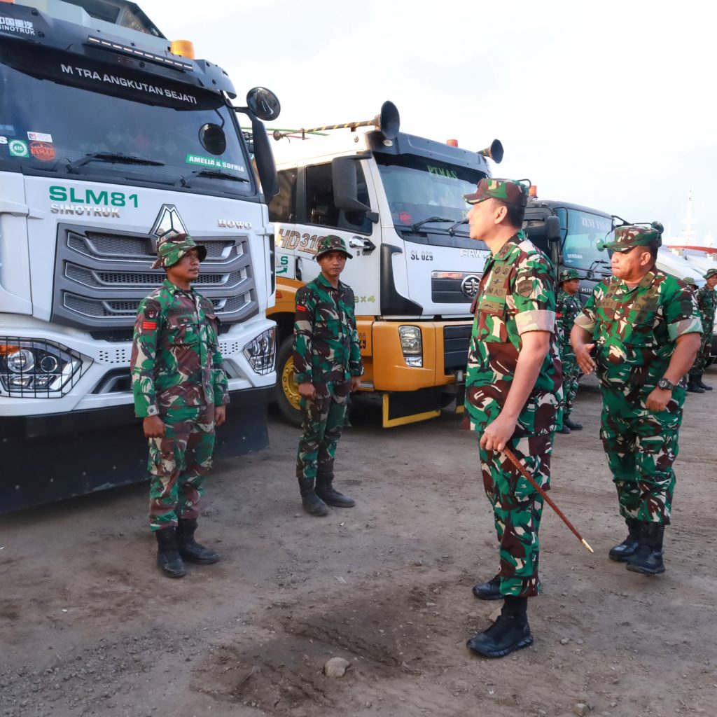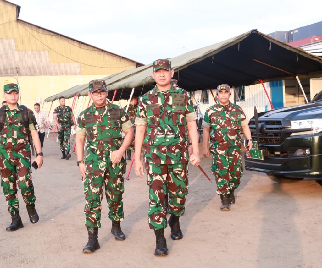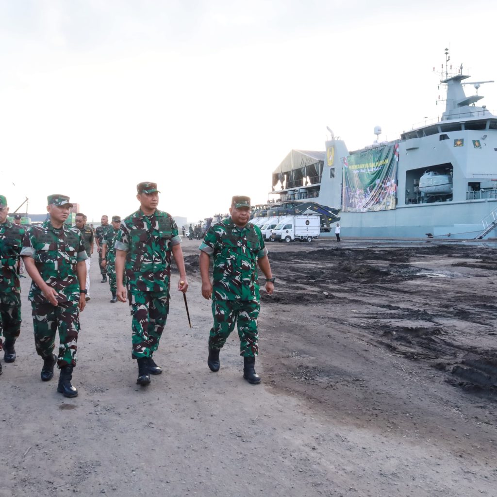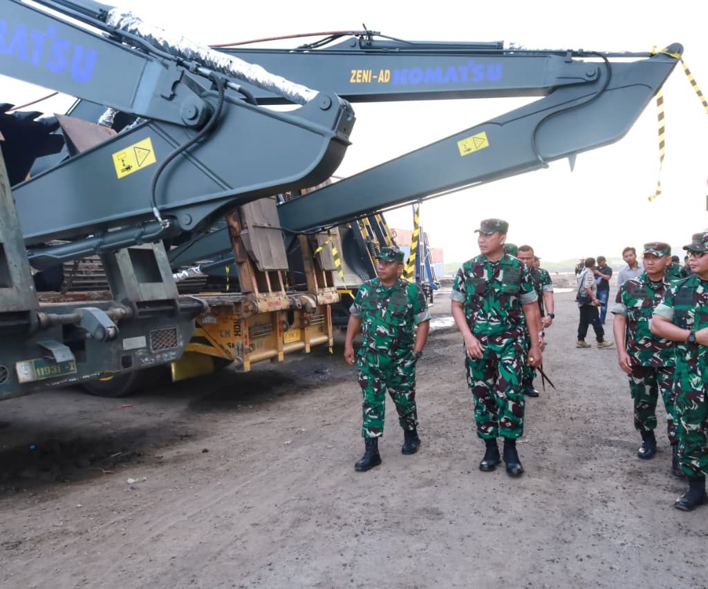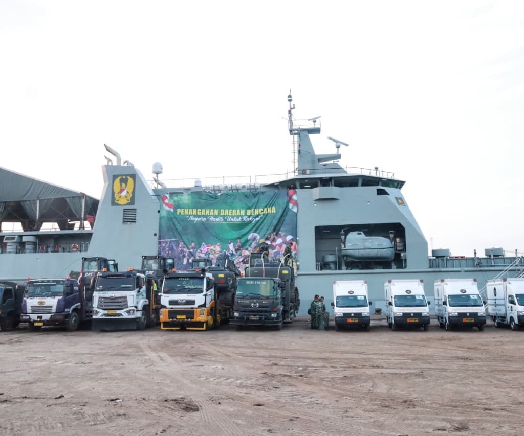 Belawan – Pangdam I/Bukit Barisan Mayjen TNI Hendy Antariksa meninjau langsung kedatangan bantuan dari Kepala Staf Angkatan Darat (Kasad) Jenderal TNI Maruli Simanjuntak yang diangkut menggunakan Kapal ADRI LIII di Dermaga 202 Ujung Baru, Pelabuhan Belawan, Senin (12/1/2026).