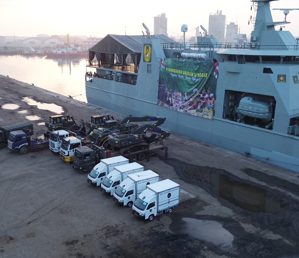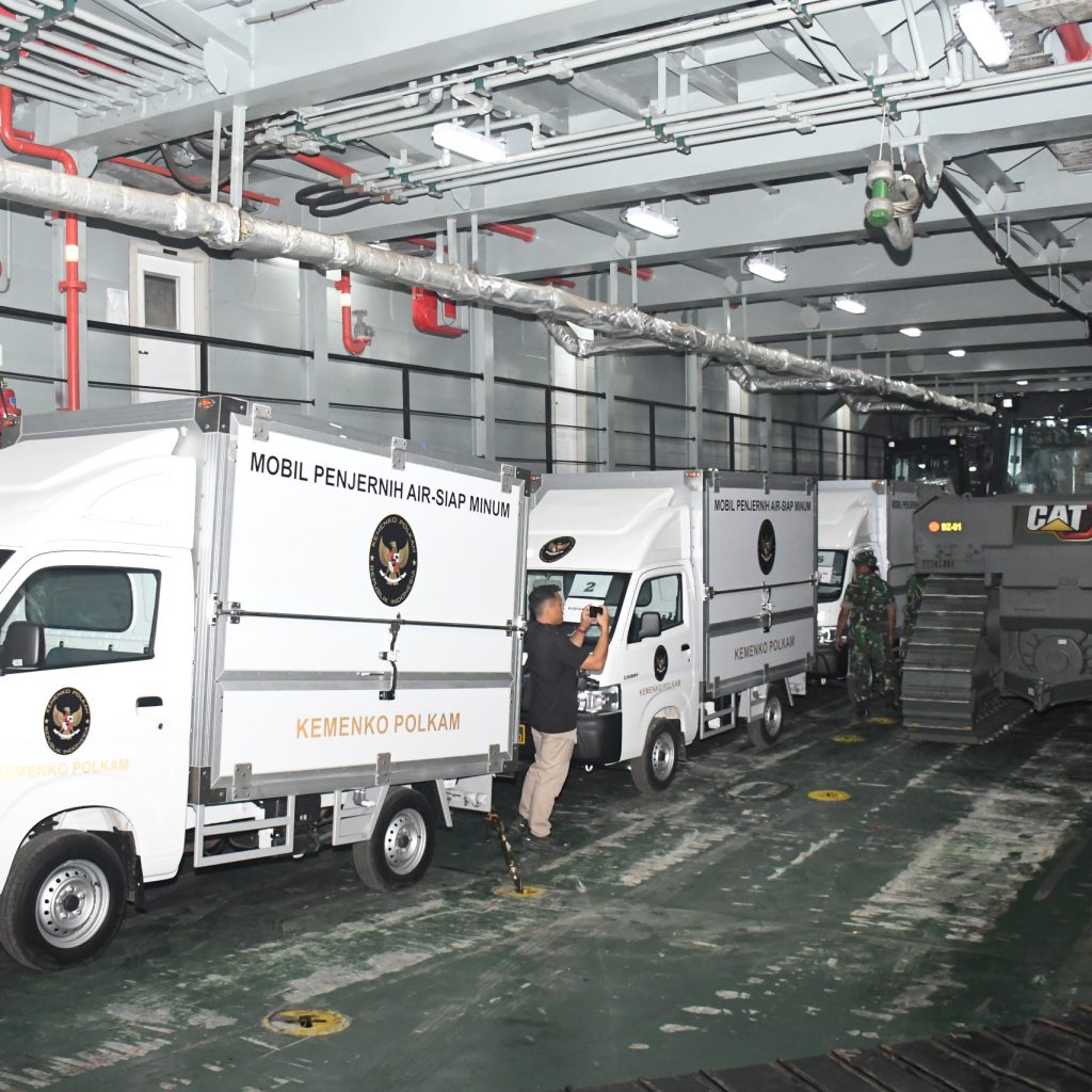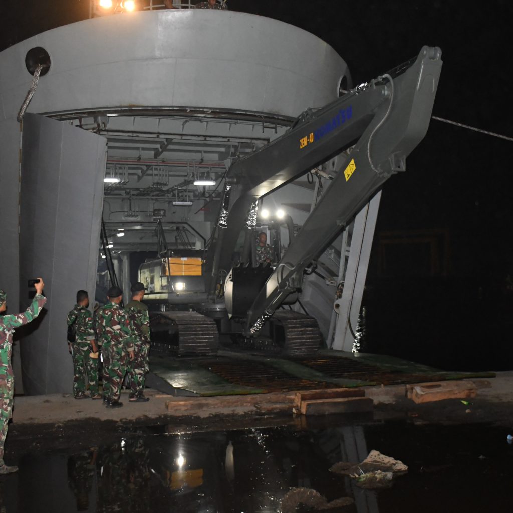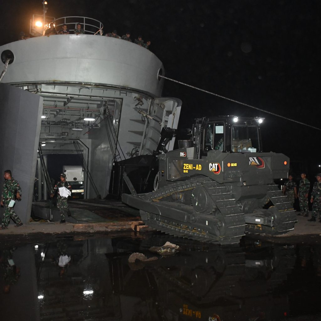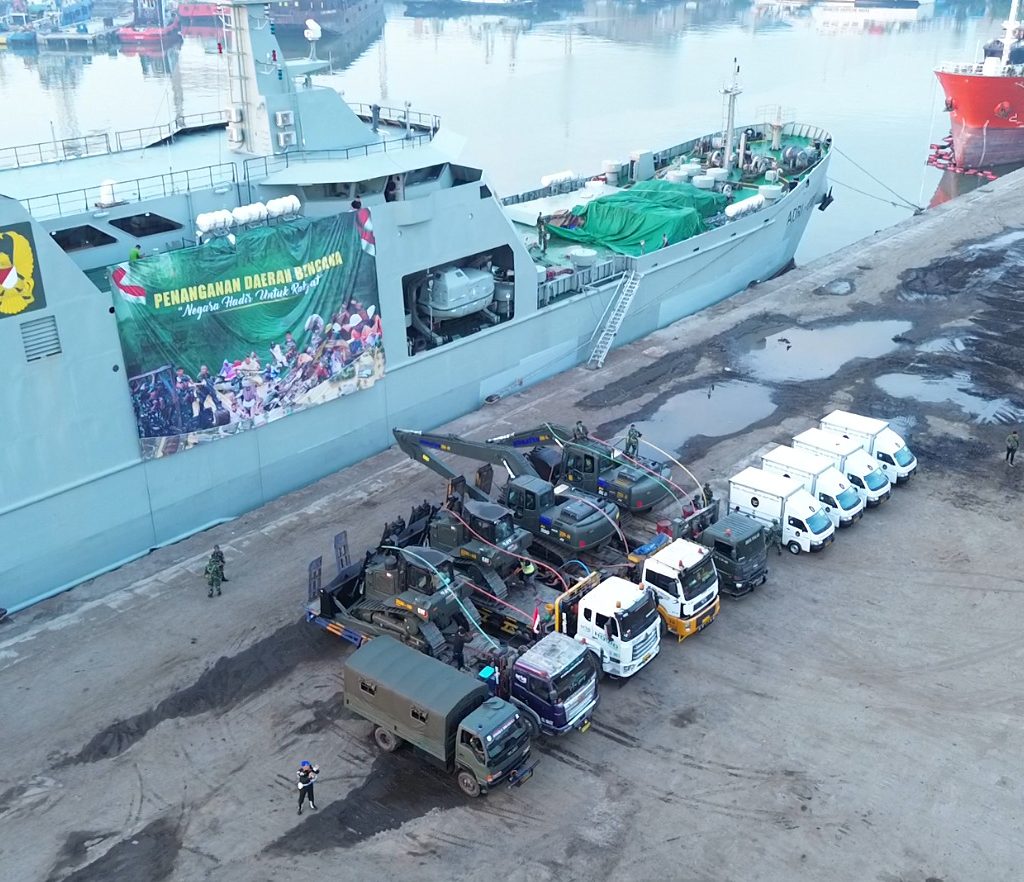 Belawan – Pangdam I/Bukit Barisan Mayjen TNI Hendy Antariksa meninjau langsung kedatangan bantuan dari Kepala Staf Angkatan Darat (Kasad) Jenderal TNI Maruli Simanjuntak yang diangkut menggunakan Kapal ADRI LIII di Dermaga 202 Ujung Baru, Pelabuhan Belawan, Senin (12/1/2026).