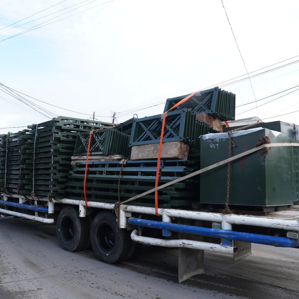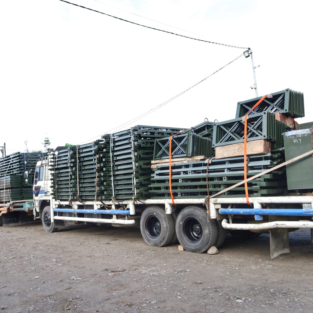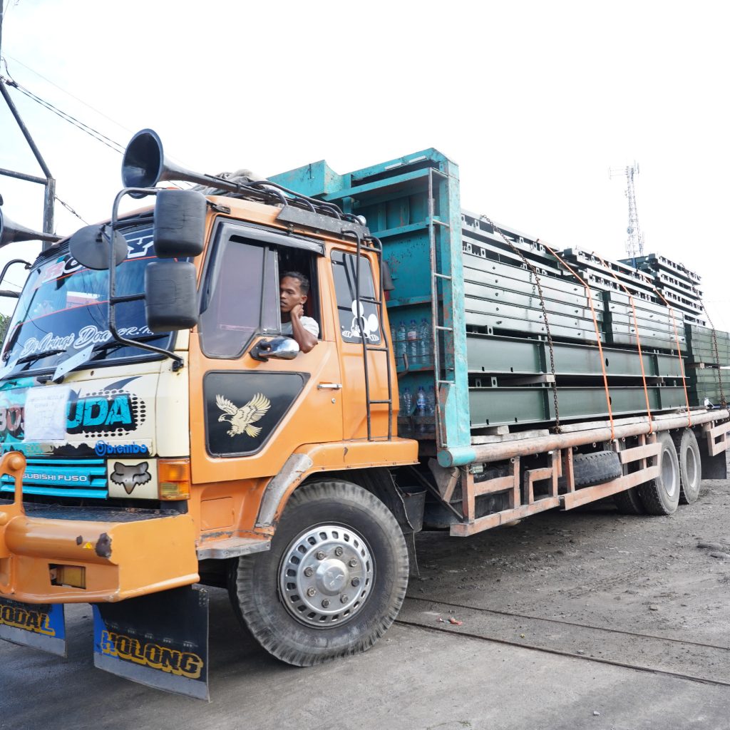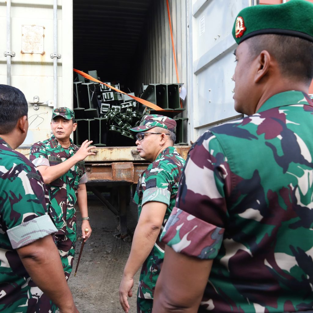 Di lokasi, Pangdam menyaksikan proses pemindahan dan pengangkutan material ke atas truk sekaligus pelepasan pergeseran menuju titik pembangunan. Pemeriksaan dilakukan secara menyeluruh guna menjamin tidak ada komponen yang hilang, tertukar, maupun kurang sebelum diberangkatkan.