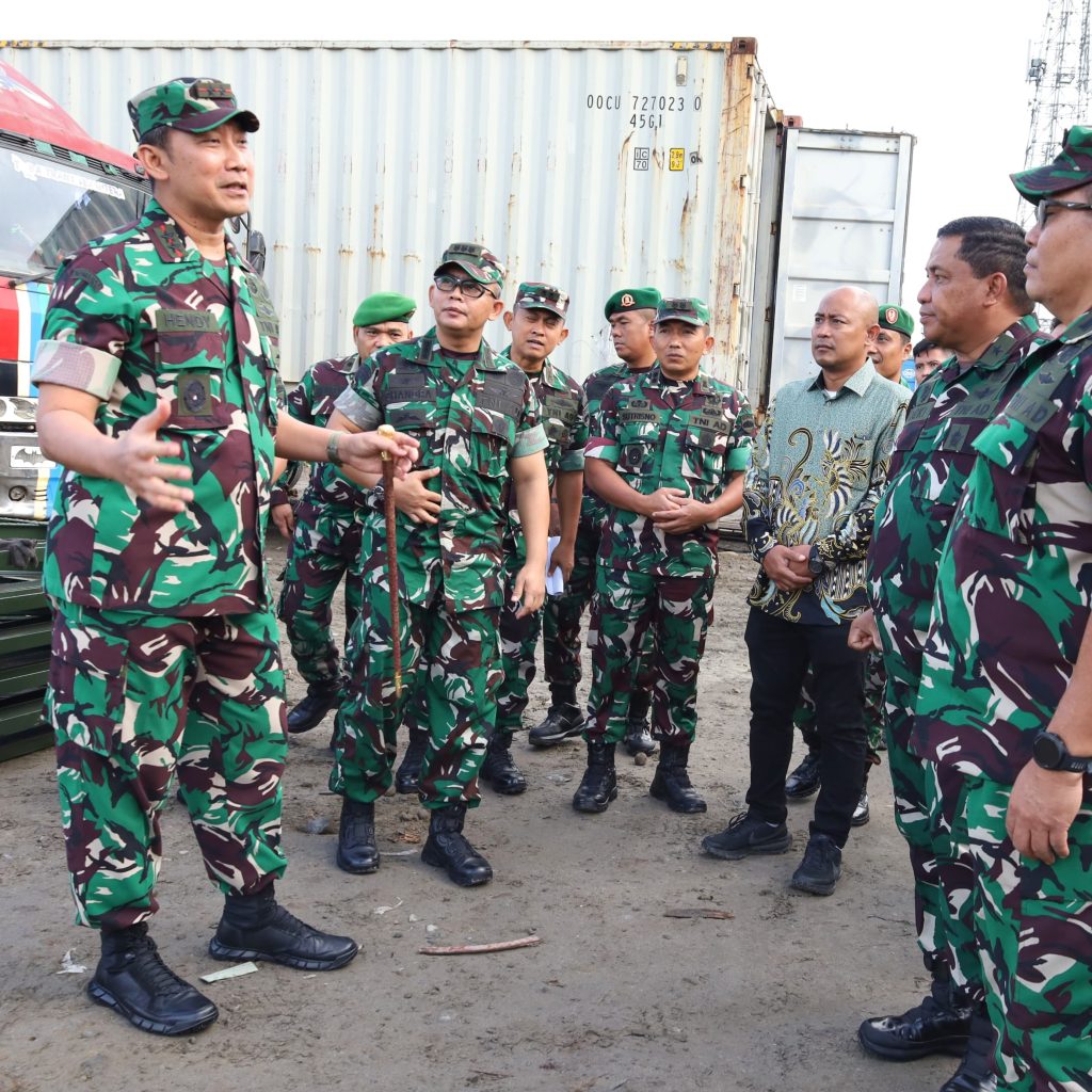 Medan – Pangdam I/Bukit Barisan Mayjen TNI Hendy Antariksa meninjau langsung proses pemindahan delapan unit Jembatan Modular Type 3-1 di Pool Bongkar Muat Titi Papan, Mabar, Kota Medan, Rabu (18/2/2026). Peninjauan dilakukan untuk memastikan seluruh material dalam kondisi lengkap sebelum didistribusikan ke daerah sasaran di Sumatera Utara.
