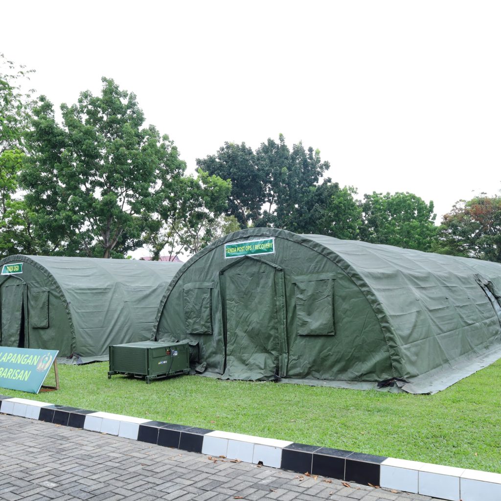 Gelar rumah sakit lapangan ini merupakan tindak lanjut perintah pimpinan guna mengantisipasi kebutuhan pelayanan kesehatan darurat. Fasilitas yang disiapkan mencakup berbagai fungsi layanan, mulai dari tenda perawatan, isolasi, UGD, ICU, hingga tenda operasi, laboratorium, radiologi, farmasi, serta dukungan administrasi dan komando, dengan total 20 unit tenda dalam kondisi lengkap dan siap operasional.