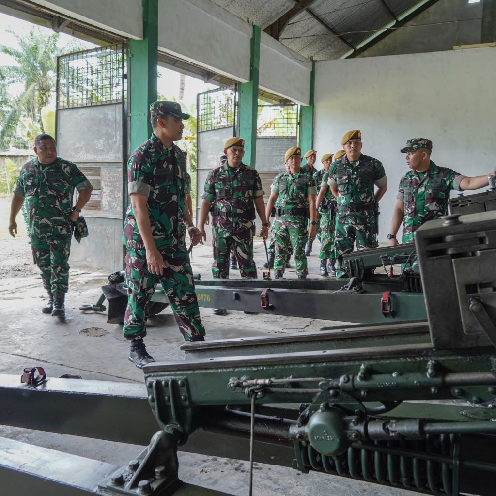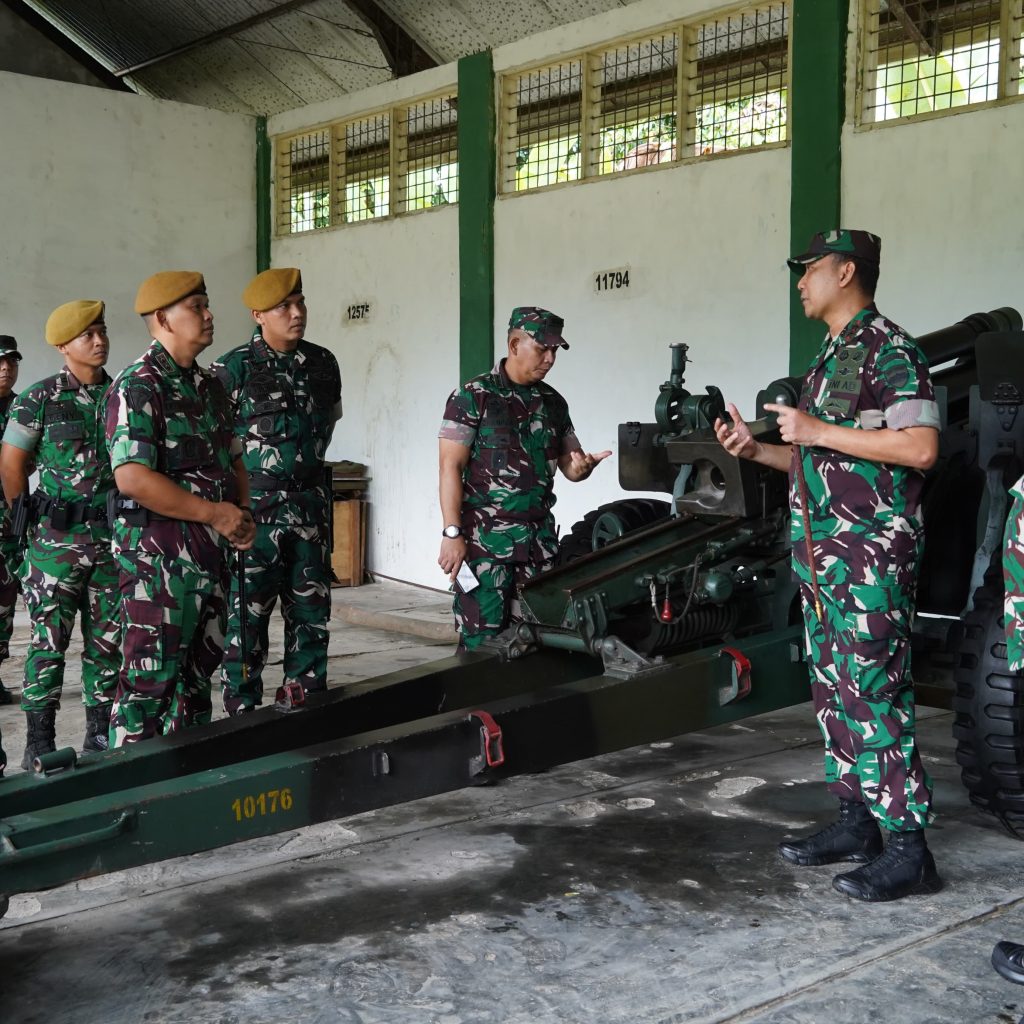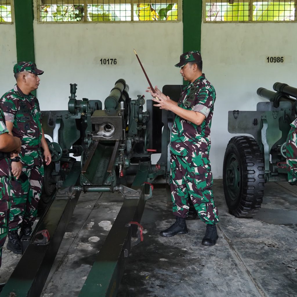 Setelah pengarahan, Pangdam melaksanakan pengecekan garasi kendaraan, gudang meriam, serta gudang munisi meriam guna memastikan kesiapan operasional satuan, khususnya terkait kondisi alutsista dan sarana pendukung.