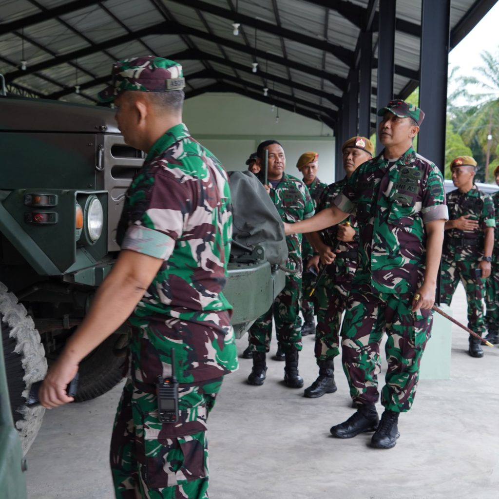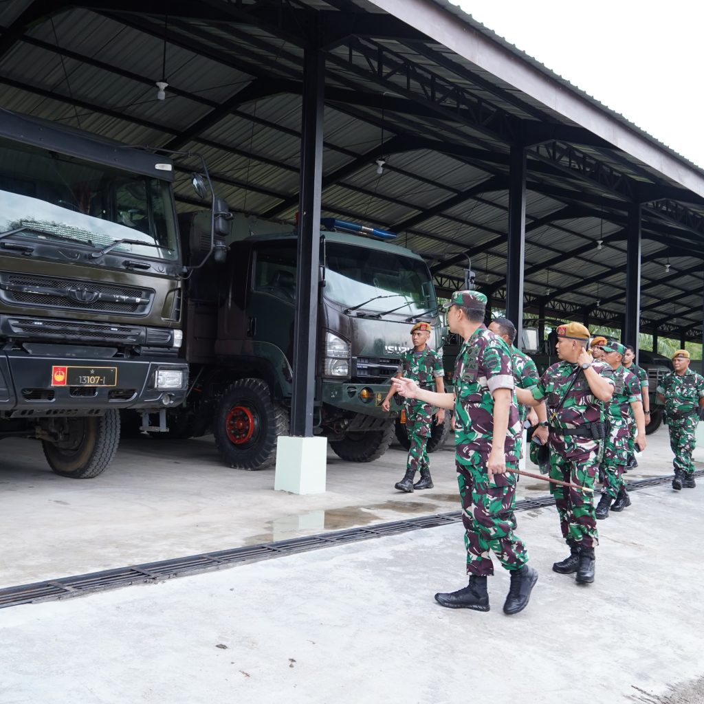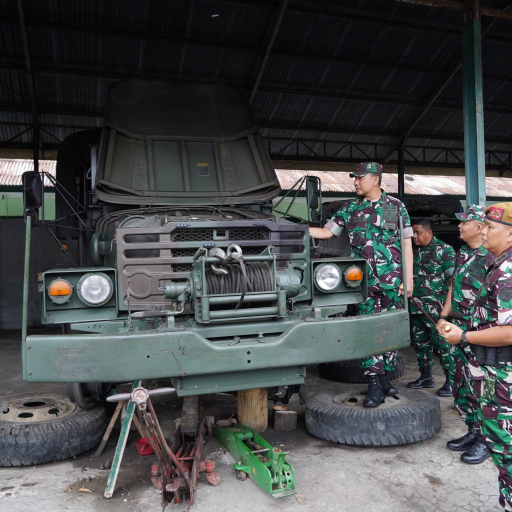 Setelah pengarahan, Pangdam melaksanakan pengecekan garasi kendaraan, gudang meriam, serta gudang munisi meriam guna memastikan kesiapan operasional satuan, khususnya terkait kondisi alutsista dan sarana pendukung.