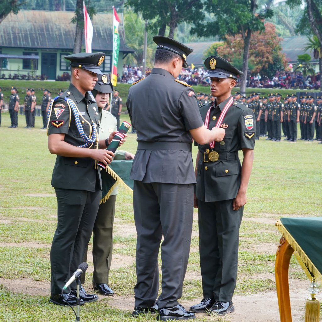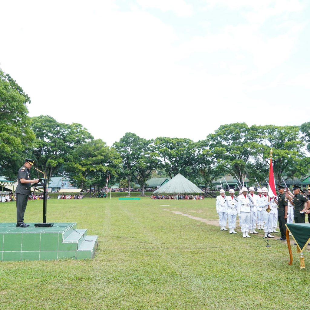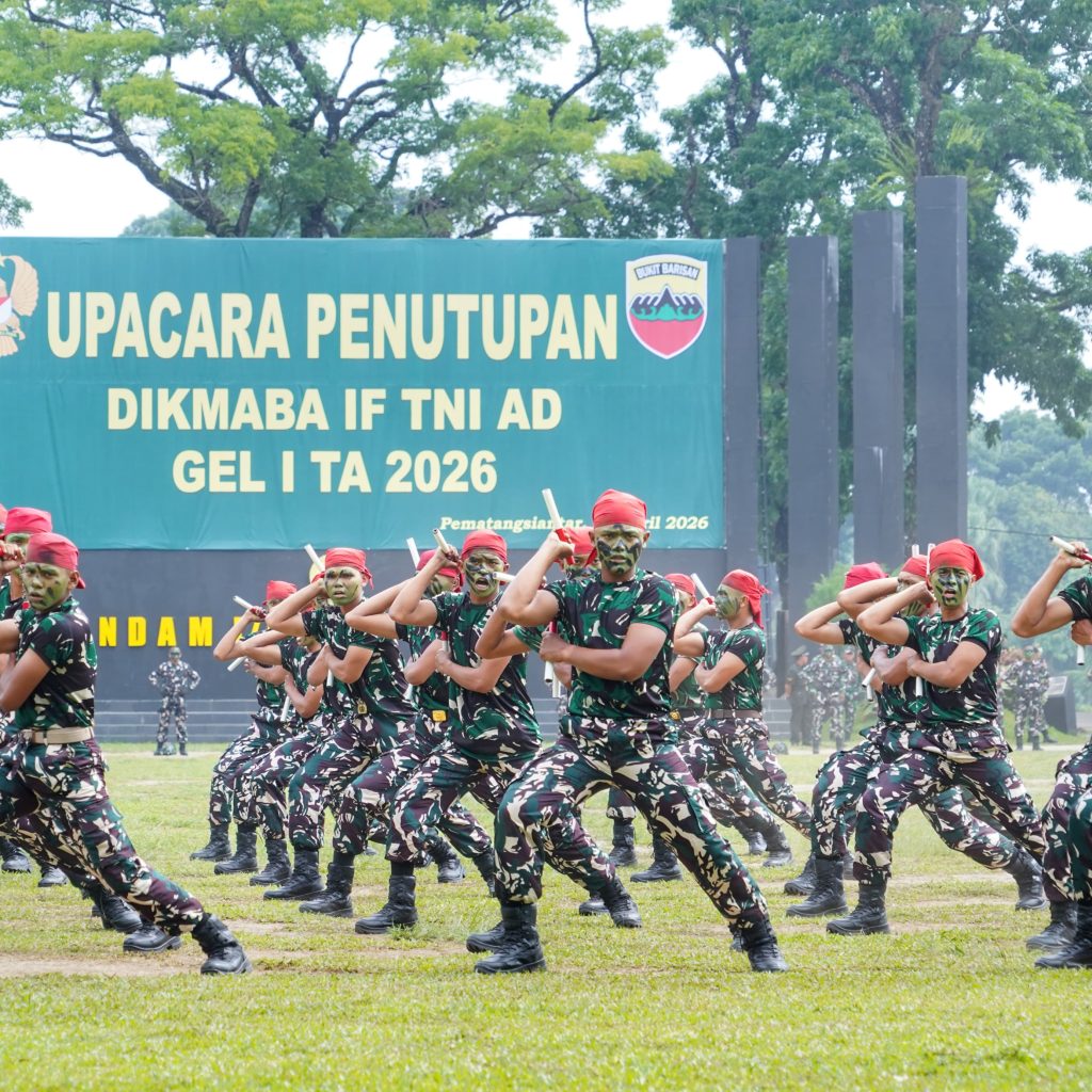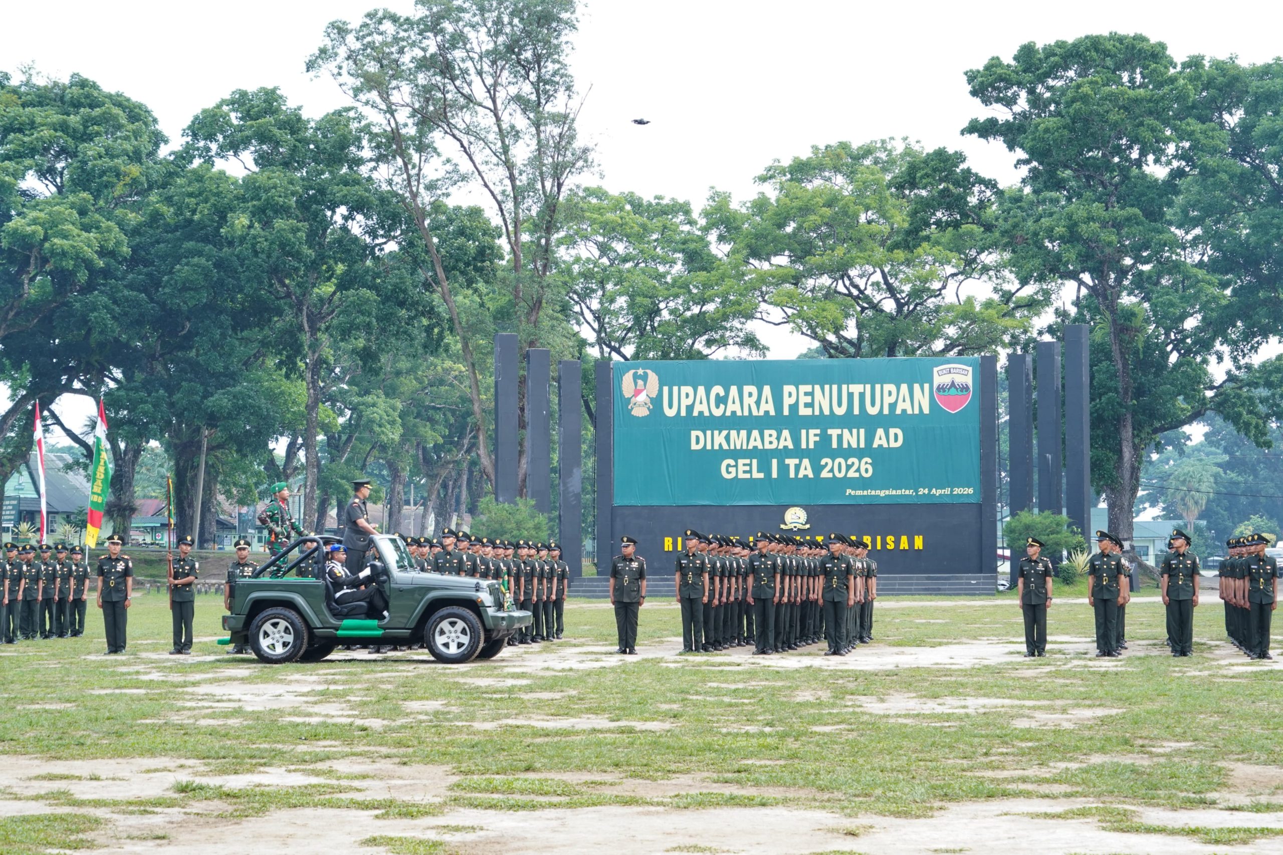 Pematangsiantar – Pangdam I/Bukit Barisan Mayjen TNI Hendy Antariksa memimpin upacara penyumpahan dan penutupan Pendidikan Pertama Bintara (Dikmaba) IF TNI AD Gelombang I Tahun Anggaran 2026 di Lapangan Jenderal Soedirman, Rindam I/BB, Pematangsiantar, Jumat (24/4/2026). Upacara ini menandai resmi dilantiknya 421 Bintara Remaja dengan pangkat Sersan Dua setelah menyelesaikan pendidikan selama 8 minggu.