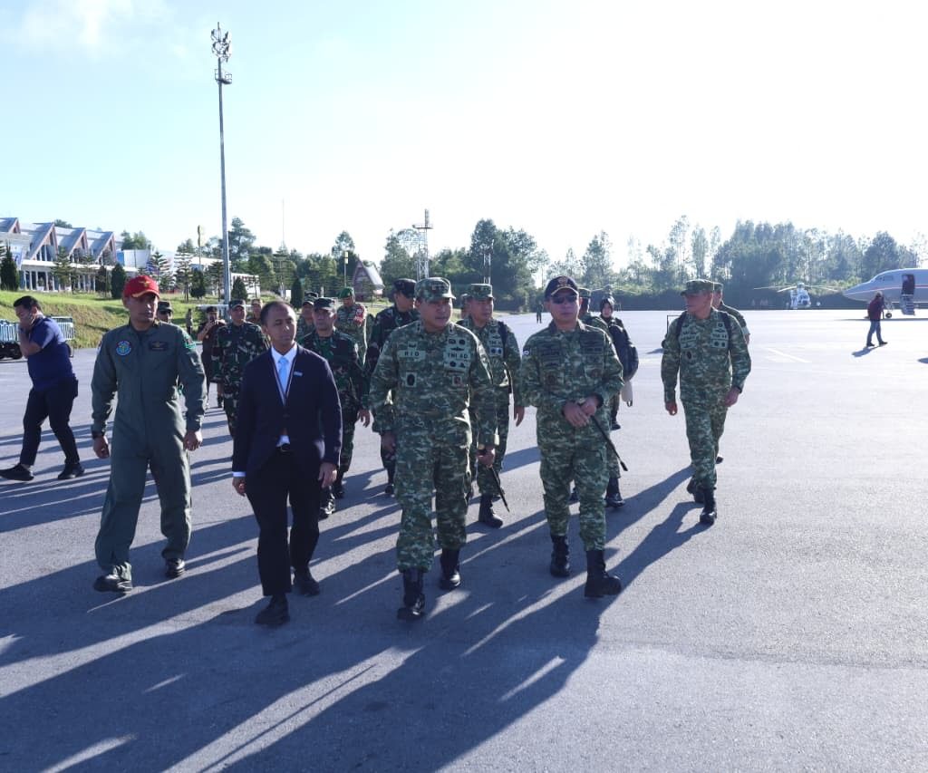 Panglima TNI di Bandara Silangit disambut oleh Pangdam I/BB Mayjen TNI Rio Firdianto, Aslog Kodam I/BB Kolonel Inf Ato Sudiatna, Bupati Taput Dr. Jonius Taripar Parsaoran Hutabarat SI, MSI, Dandim 0210/TU Letkol Kav Ronald Tampubolon SH, M.Han, GM Bandara Silangit Hrdanu Sri Novanto, serta Kapolres Taput AKBP Ernis Sitinjak SH, SIK.