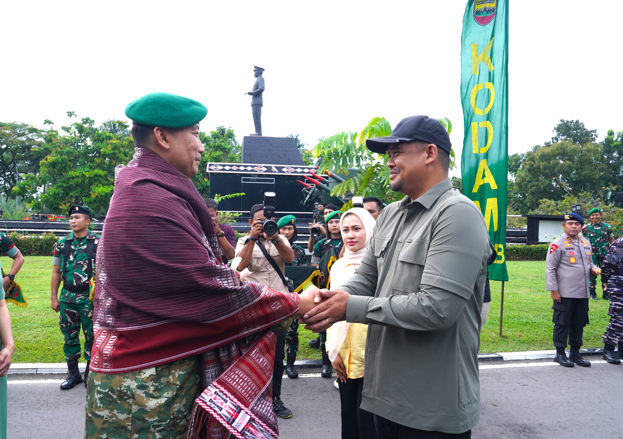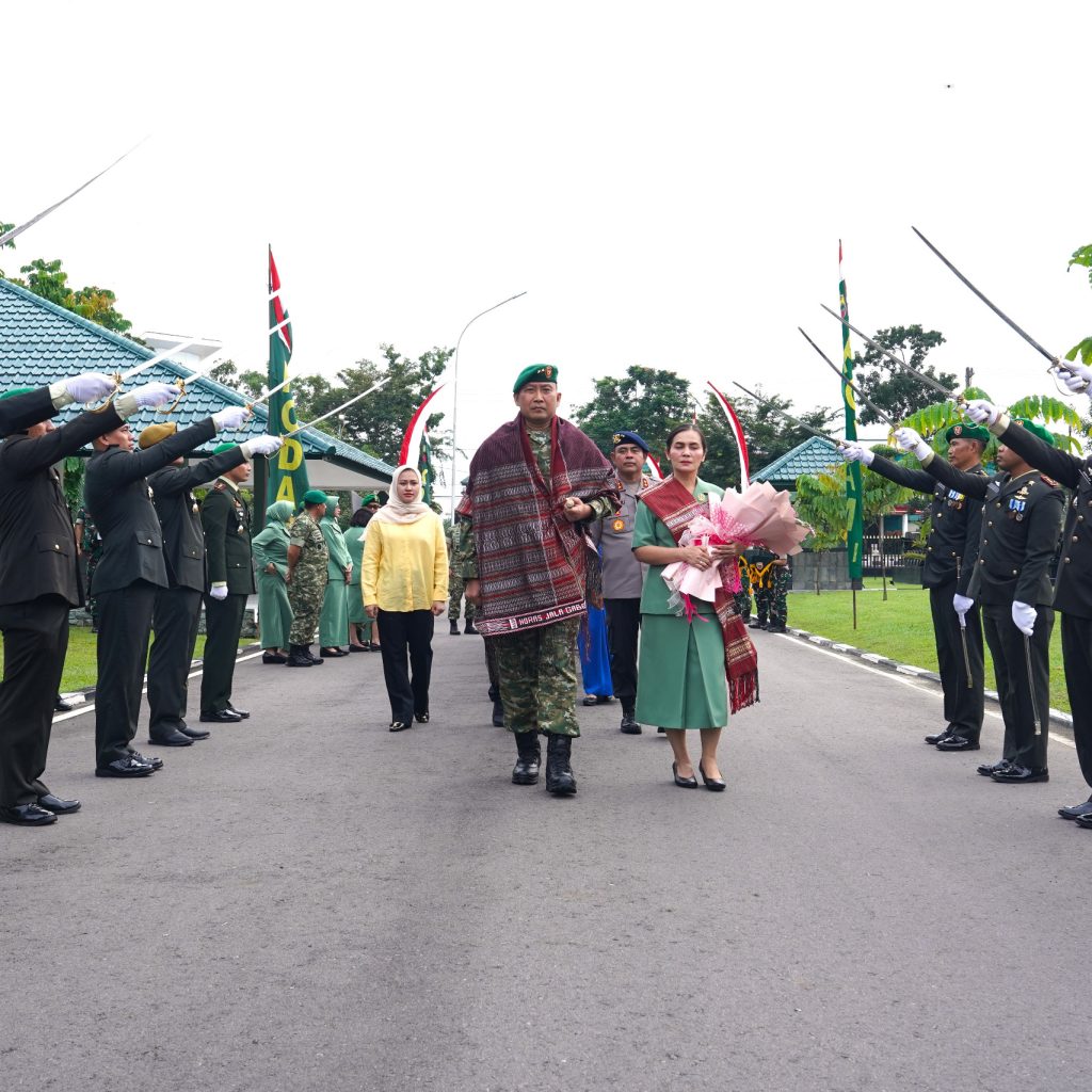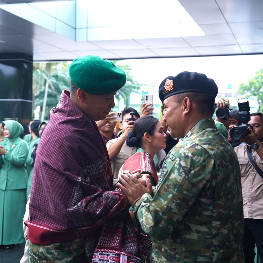 Medan – Panglima Kodam I/Bukit Barisan, Mayjen TNI Hendy Antariksa, bersama Ketua Persit Kartika Chandra Kirana Daerah I/Bukit Barisan, Ny. Linda Hendy Antariksa, tiba dan disambut secara resmi di Markas Kodam I/BB, Sabtu (13/12/2025). Kedatangan Pangdam I/BB beserta Ibu disambut melalui rangkaian tradisi korps militer dan adat sebagai bentuk penghormatan serta penerimaan resmi di lingkungan Kodam I/Bukit Barisan.