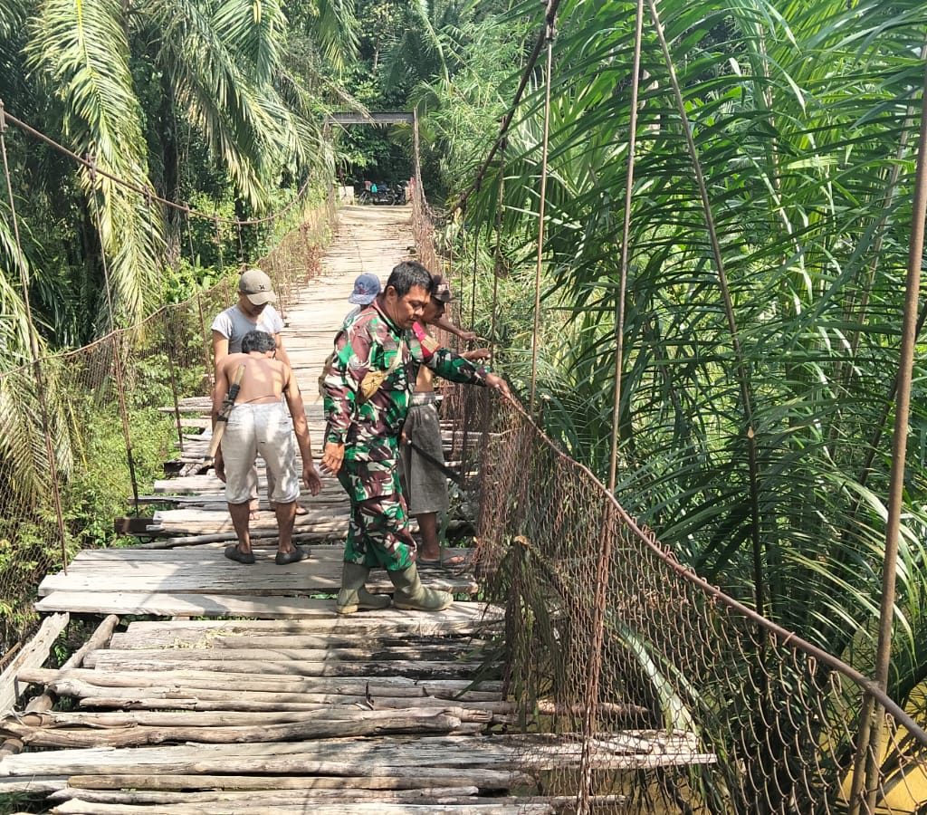 Labuhanbatu Selatan — Kodim 0209/LB telah menuntaskan perbaikan Jembatan Gantung Perintis di Dusun Patihe Jae, Desa Sampean, Kecamatan Sei Kanan, Kabupaten Labuhanbatu Selatan, Senin (23/2/2026).