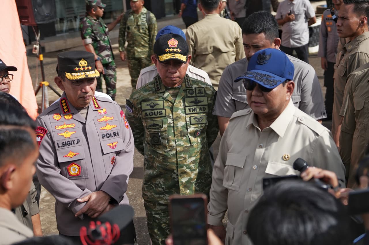 Secara bersamaan, Panglima TNI beserta rombongan tiba di GOR Pandan untuk memastikan dukungan unsur TNI berjalan optimal dan terkoordinasi dalam mendukung penanganan bencana.