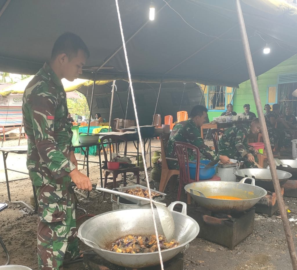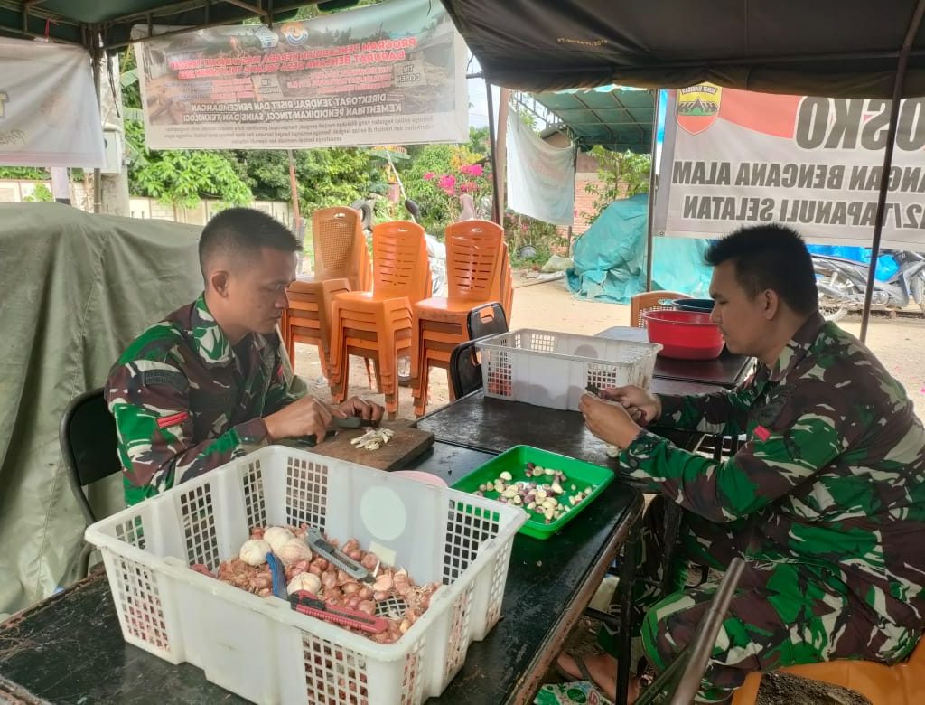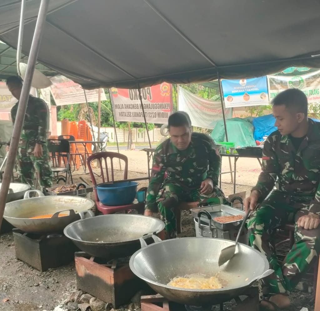 Tapanuli Selatan – Personel Satgas Bekangdam I/BB melaksanakan kegiatan dapur umum untuk membantu warga terdampak bencana banjir di Desa Tolang Julu, Kecamatan Sayurmatinggi, Kabupaten Tapanuli Selatan (Tapsel),Jumat (9/1/2026). Kegiatan tersebut difokuskan pada pemenuhan kebutuhan konsumsi masyarakat selama masa tanggap darurat.