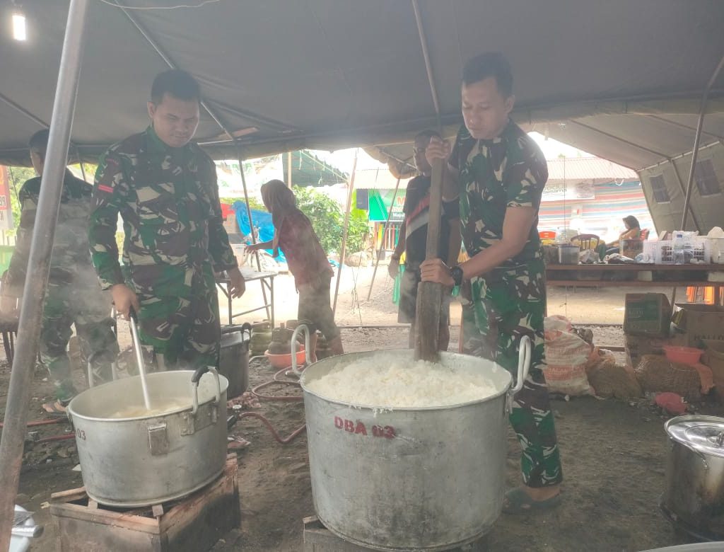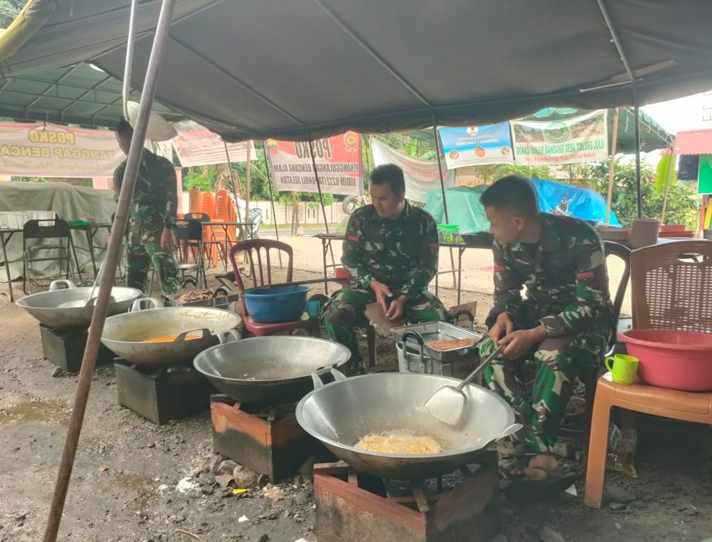 Satgas Bekangdam I/BB Layani Warga Terdampak Banjir Melalui Dapur Umum di Tolang Julu