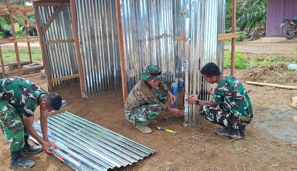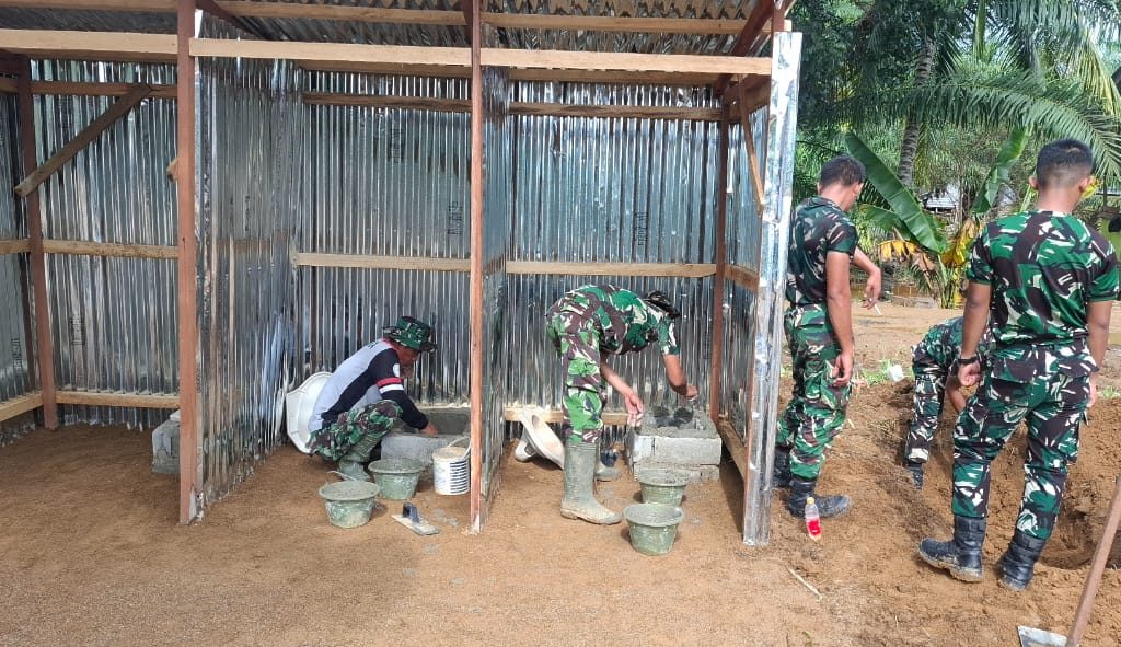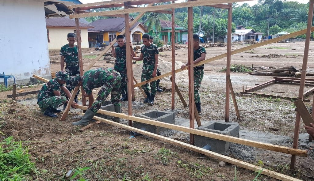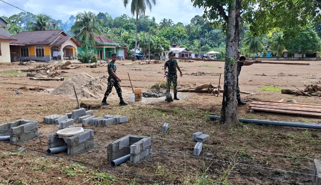 Satgas Gulbencal Kodam I/BB Bangun Fasilitas MCK bagi Warga Terdampak Bencana di Kec. Badiri