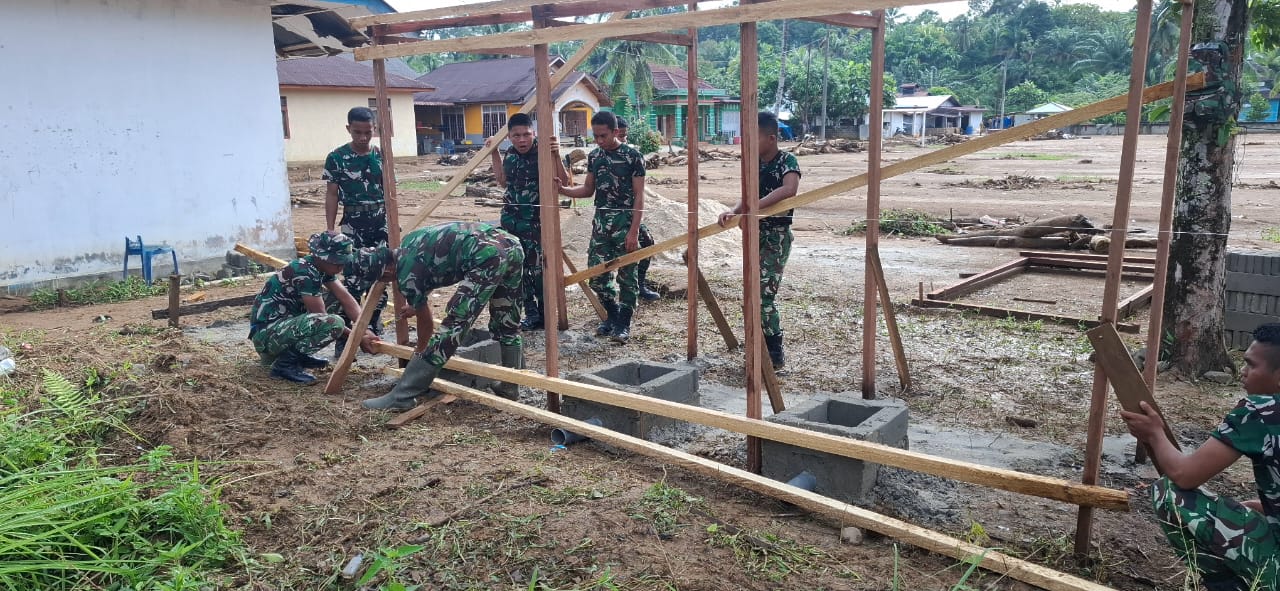 Satgas Gulbencal Kodam I/BB Bangun Fasilitas MCK bagi Warga Terdampak Bencana di Kec. Badiri