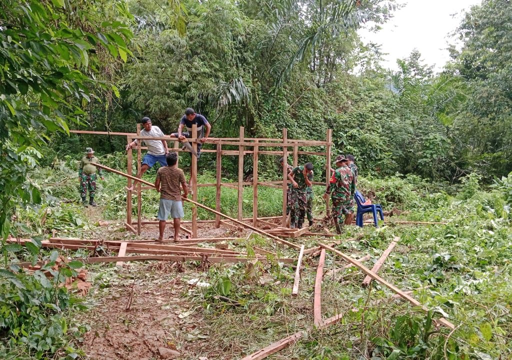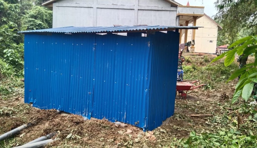 Tapanuli Tengah – Satgas Gulbencal Kodam I/BB bersama Kodim 0211/Tapanuli Tengah melaksanakan pembangunan fasilitas MCK di lokasi pengungsian HKBP Dusun I Pagaran Pinasa, Kabupaten Tapanuli Tengah, Sabtu (20/12/2025).