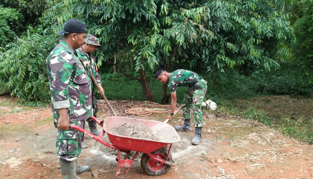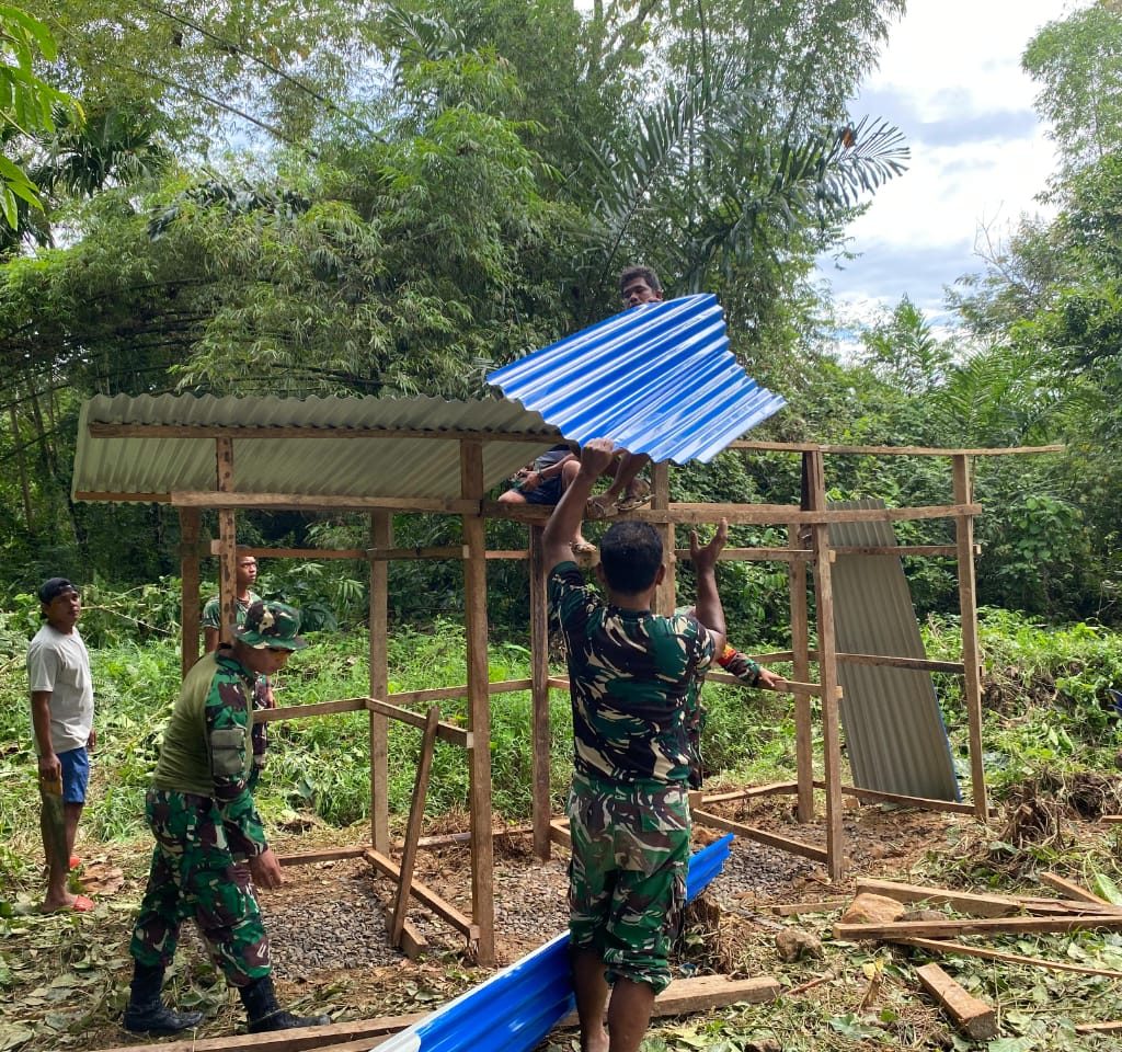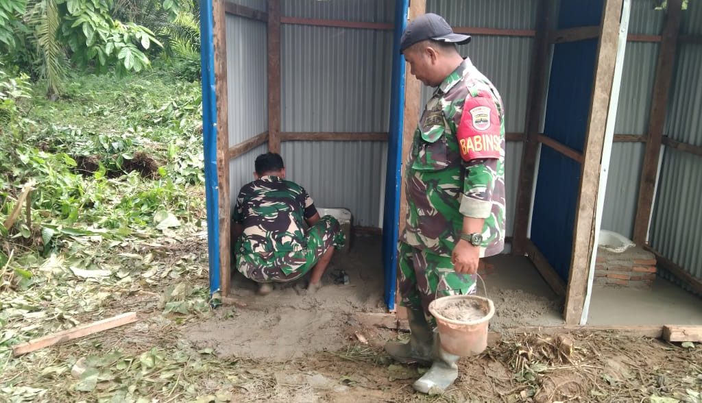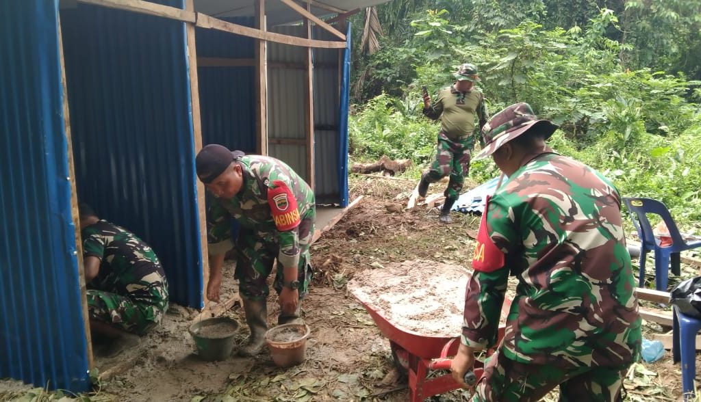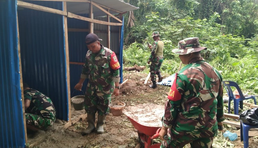 Satgas Gulbencal Kodam I/BB Bangun MCK di Pengungsian HKBP Dusun I Pagaran Pinasa