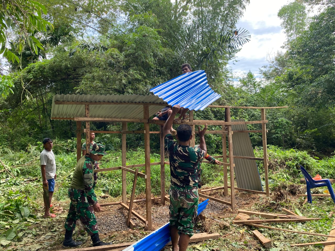 Satgas Gulbencal Kodam I/BB Bangun MCK di Pengungsian HKBP Dusun I Pagaran Pinasa