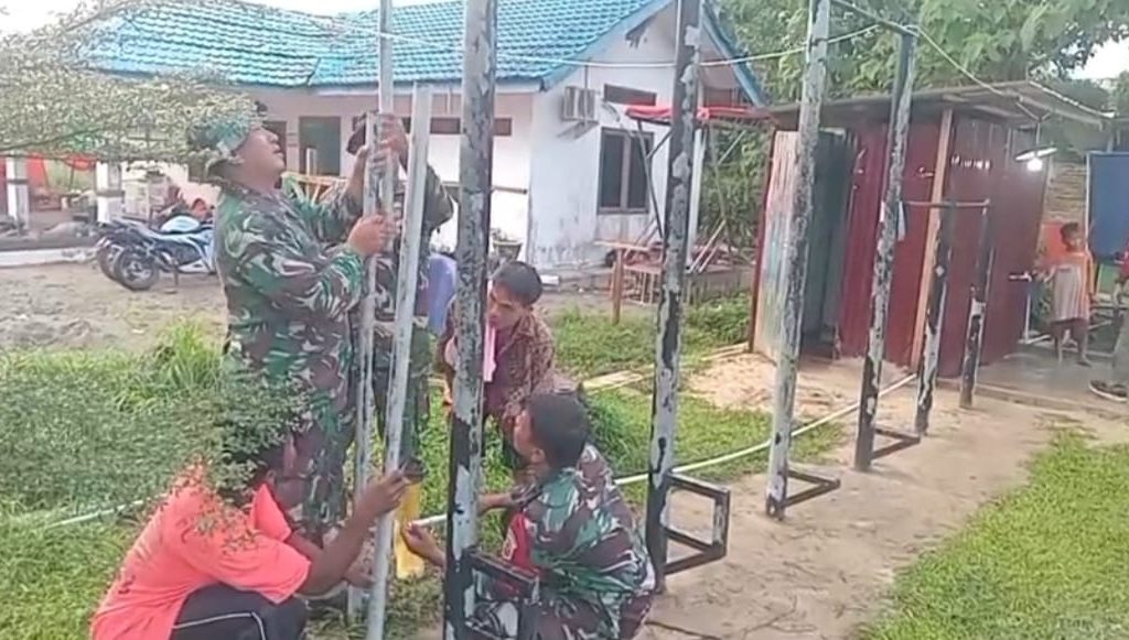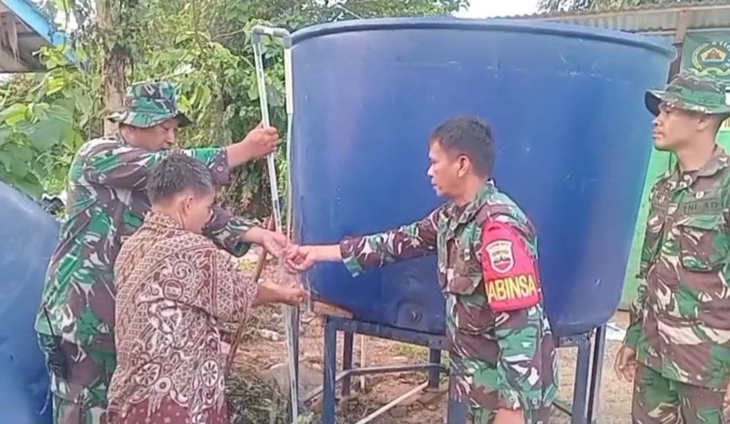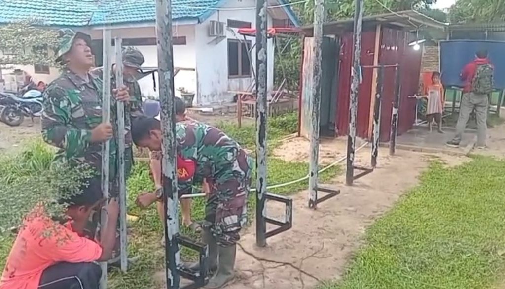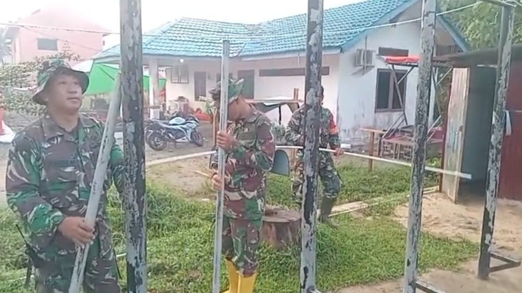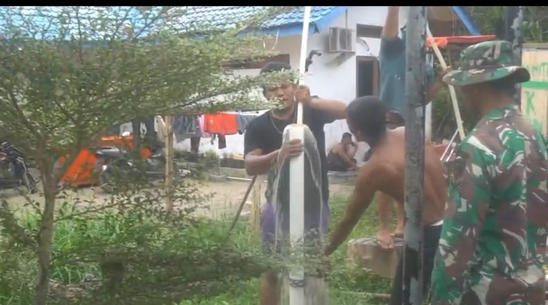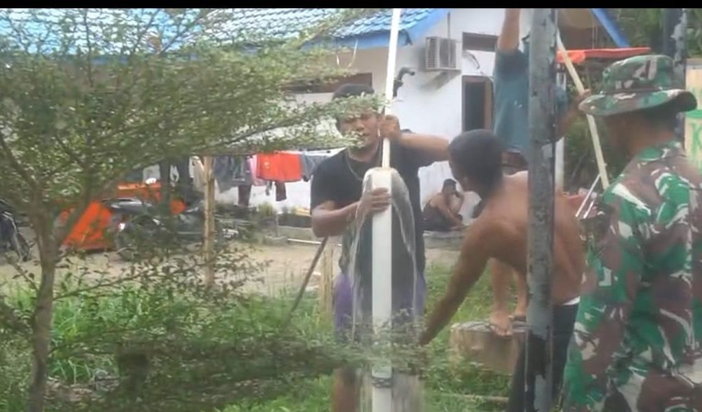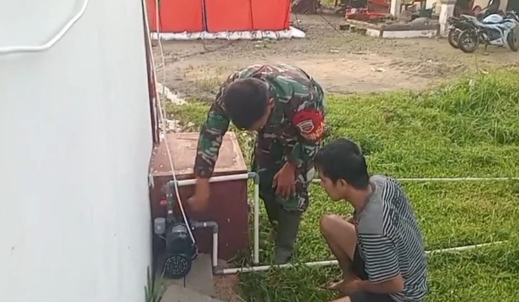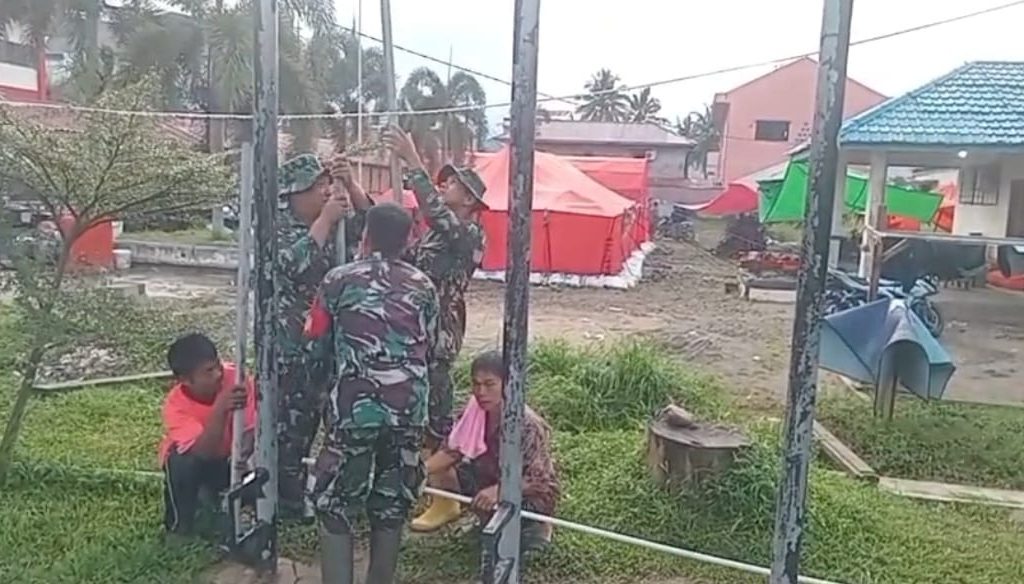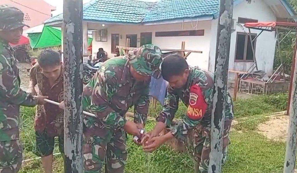Tapanuli Tengah – Satgas Gulbencal Kodam I/BB melalui Kodim 0211/Tapanuli Tengah membangun fasilitas air bersih berupa sumur bor di pengungsian Gor Pandan, Kecamatan Tukka, Senin (15/12/2025). Kegiatan ini dilakukan untuk membantu pengungsi yang terdampak banjir dan tanah longsor, agar mereka dapat memenuhi kebutuhan dasar air bersih dengan lebih mudah.