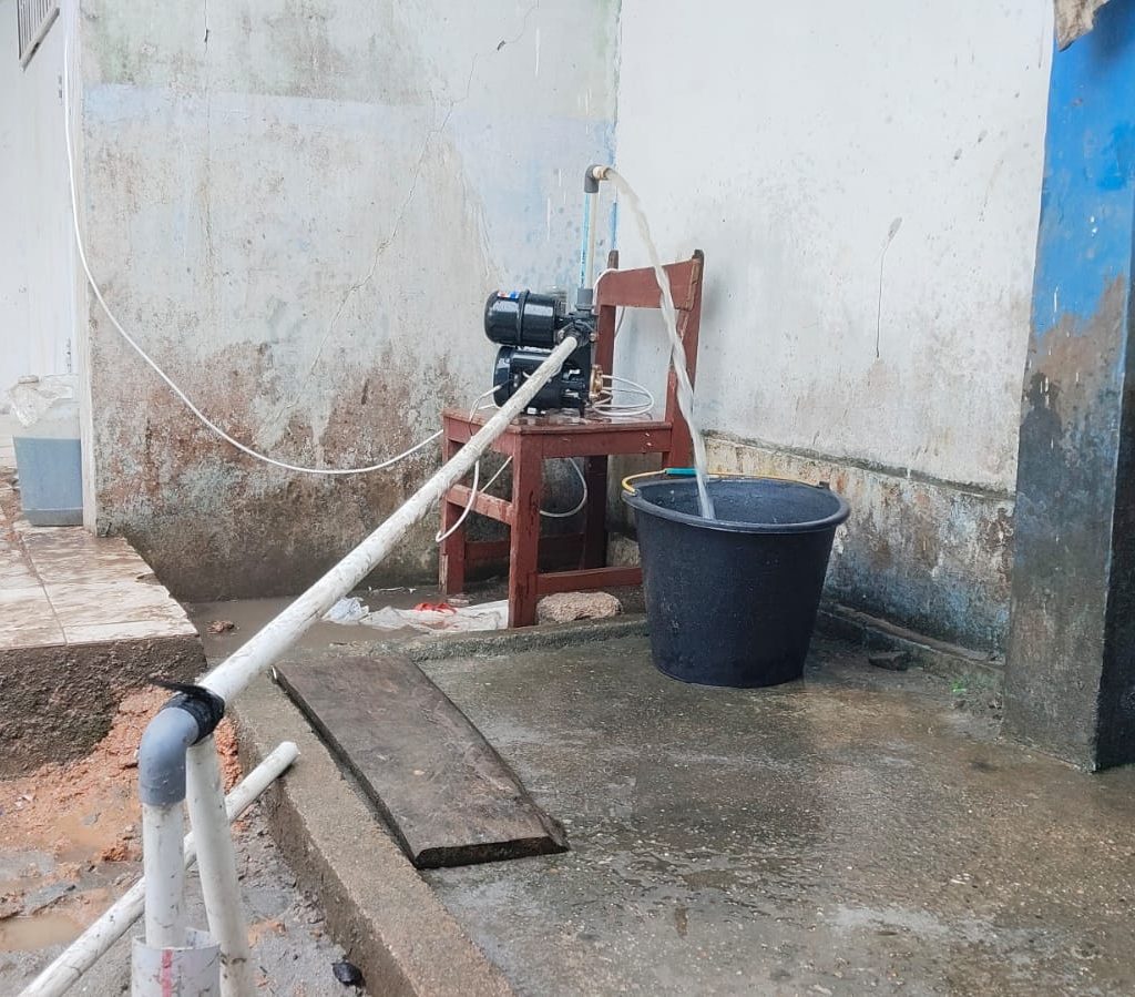 Pekerjaan pembuatan sumur bor telah selesai dengan kedalaman mencapai 27 meter. Air dari sumur tersebut telah keluar dan saat ini sudah dapat dimanfaatkan untuk memenuhi kebutuhan air bersih warga pengungsi di lokasi tersebut.