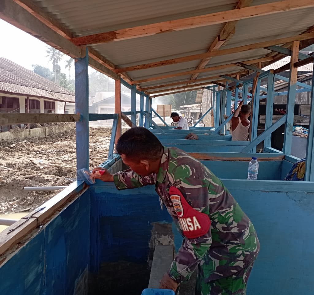Dalam pelaksanaannya, personel TNI bersama masyarakat setempat bergotong royong melakukan pemasangan seng, serta pengecatan dinding dan tiang bangunan. Hingga Selasa (23/12/2025), progres pembangunan MCK darurat di lokasi tersebut telah mencapai sekitar 73 persen dan akan terus dilanjutkan sesuai tahapan yang telah direncanakan.