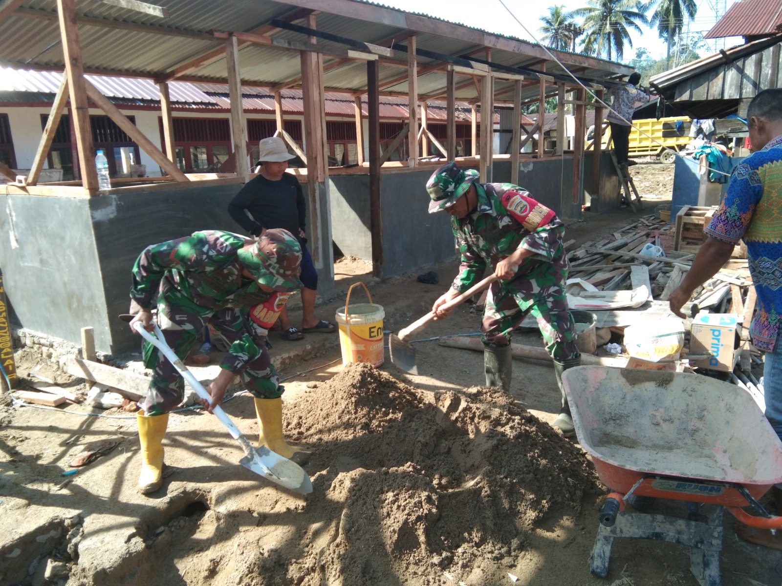 Dalam pelaksanaannya, personel TNI bersama masyarakat setempat bergotong royong melakukan pemasangan seng, serta pengecatan dinding dan tiang bangunan. Hingga Selasa (23/12/2025), progres pembangunan MCK darurat di lokasi tersebut telah mencapai sekitar 73 persen dan akan terus dilanjutkan sesuai tahapan yang telah direncanakan.