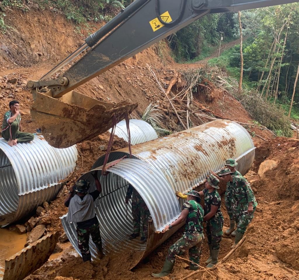 Kegiatan ini merupakan bagian dari upaya TNI AD dalam membantu pemulihan akses masyarakat pascabencana, sehingga mobilitas warga antar desa dapat kembali berjalan dengan aman dan lancar.