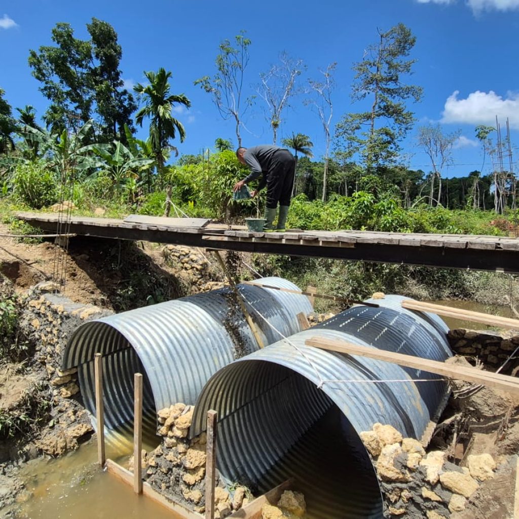 Dalam proses pengerjaan, personel melaksanakan berbagai tahapan pekerjaan, mulai dari pemasangan batu sebagai penguat dasar di bawah struktur Aramco, pembuatan pembatas jembatan, pengecatan pagar, hingga perapian badan jalan. Pekerjaan dilakukan secara terpadu dengan menggunakan peralatan manual seperti cangkul, sekop, angkong, linggis, serta perlengkapan tukang lainnya. Dua unit konstruksi Aramco juga telah terpasang seluruhnya sebagai struktur utama jembatan.