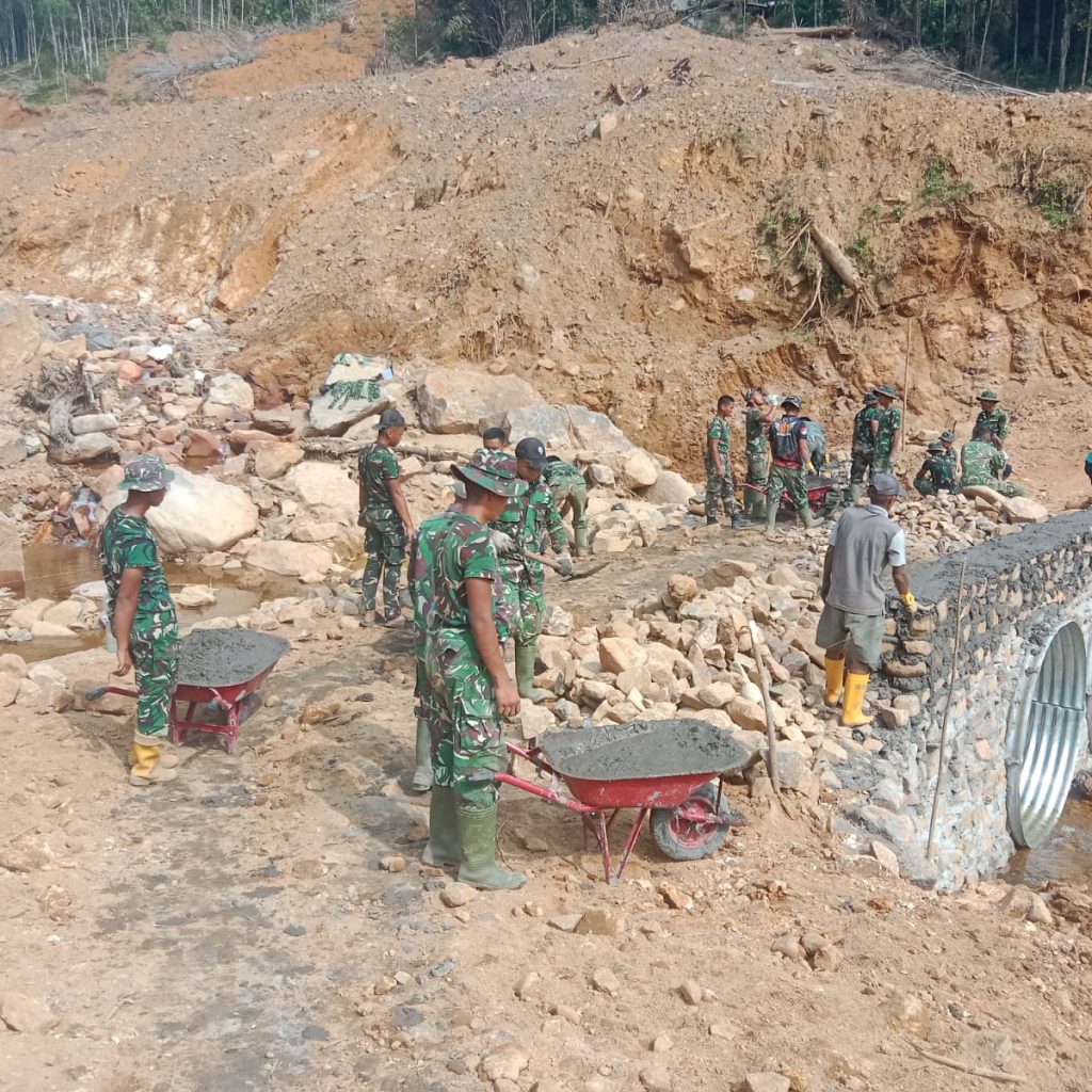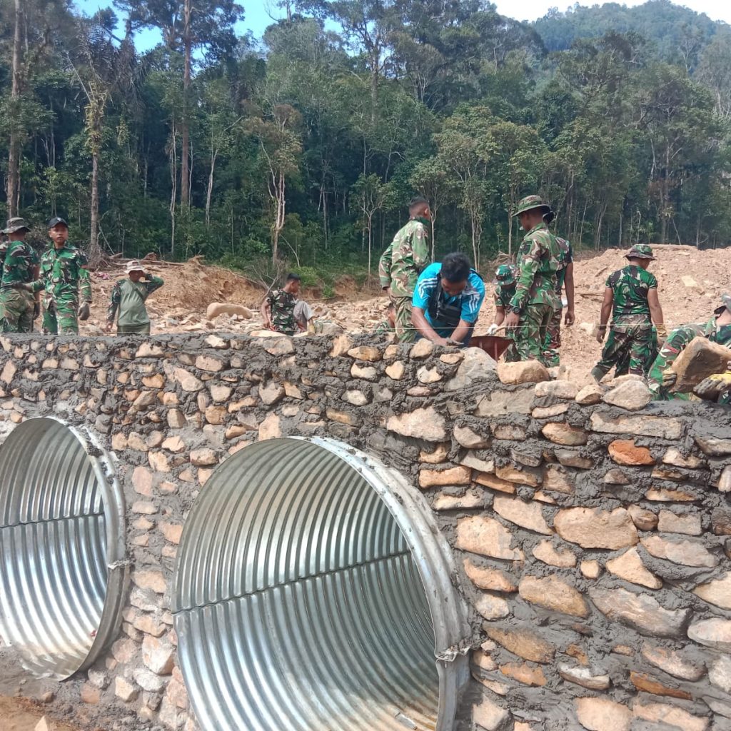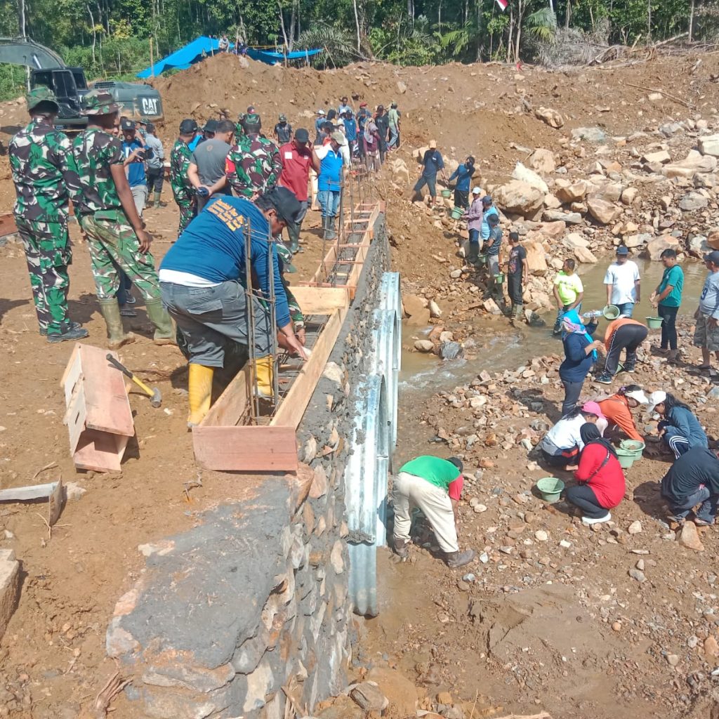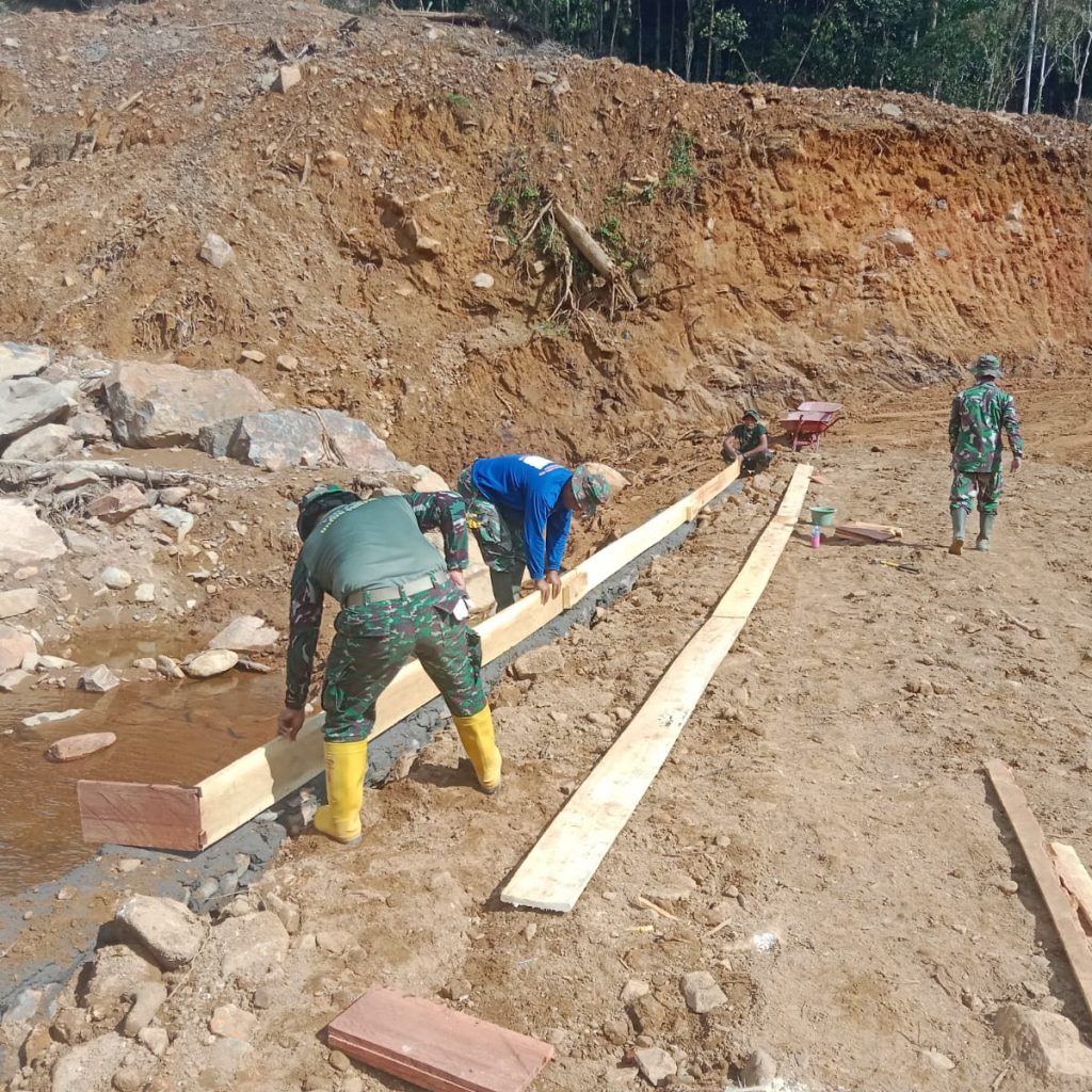 Kegiatan pembangunan tersebut dilaksanakan oleh personel gabungan dari Yon TP 908/Gaja Dompak, Zipur 1/DD, Denzibang 4/1 Sibolga, serta Koramil 05/Kolang, bersama pemerintah desa dan masyarakat setempat.