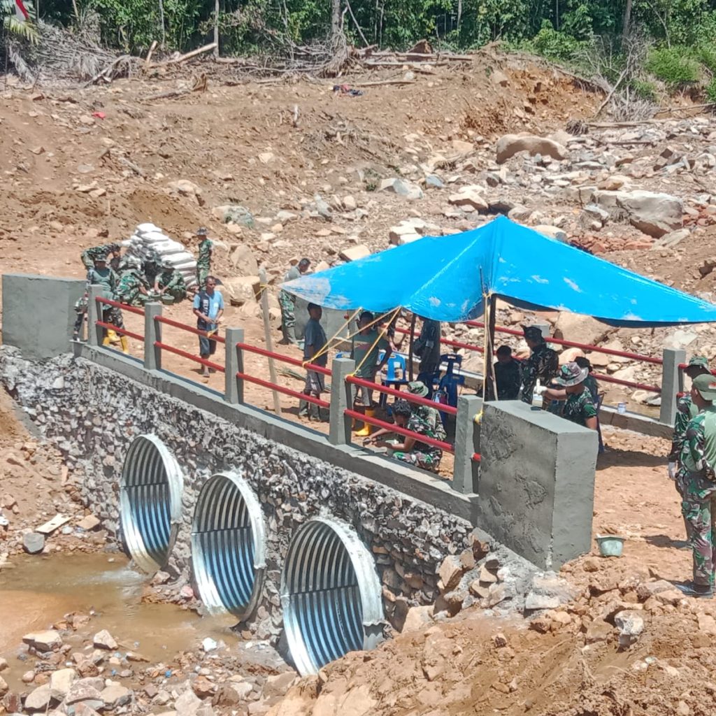 Tapanuli Tengah — Satgas Penanggulangan Bencana Alam (Gulbencal) Kodam I/Bukit Barisan merampungkan pembangunan Jembatan Armco di Desa Bair, Kecamatan Tapian Nauli, Kabupaten Tapanuli Tengah, Selasa (3/2/2026).