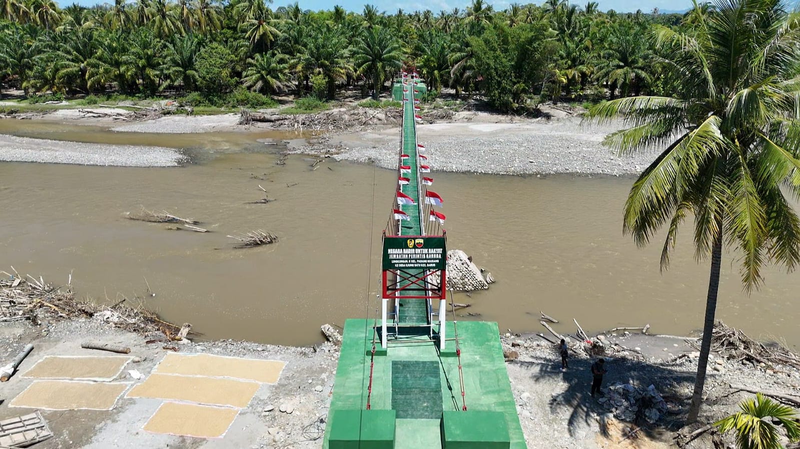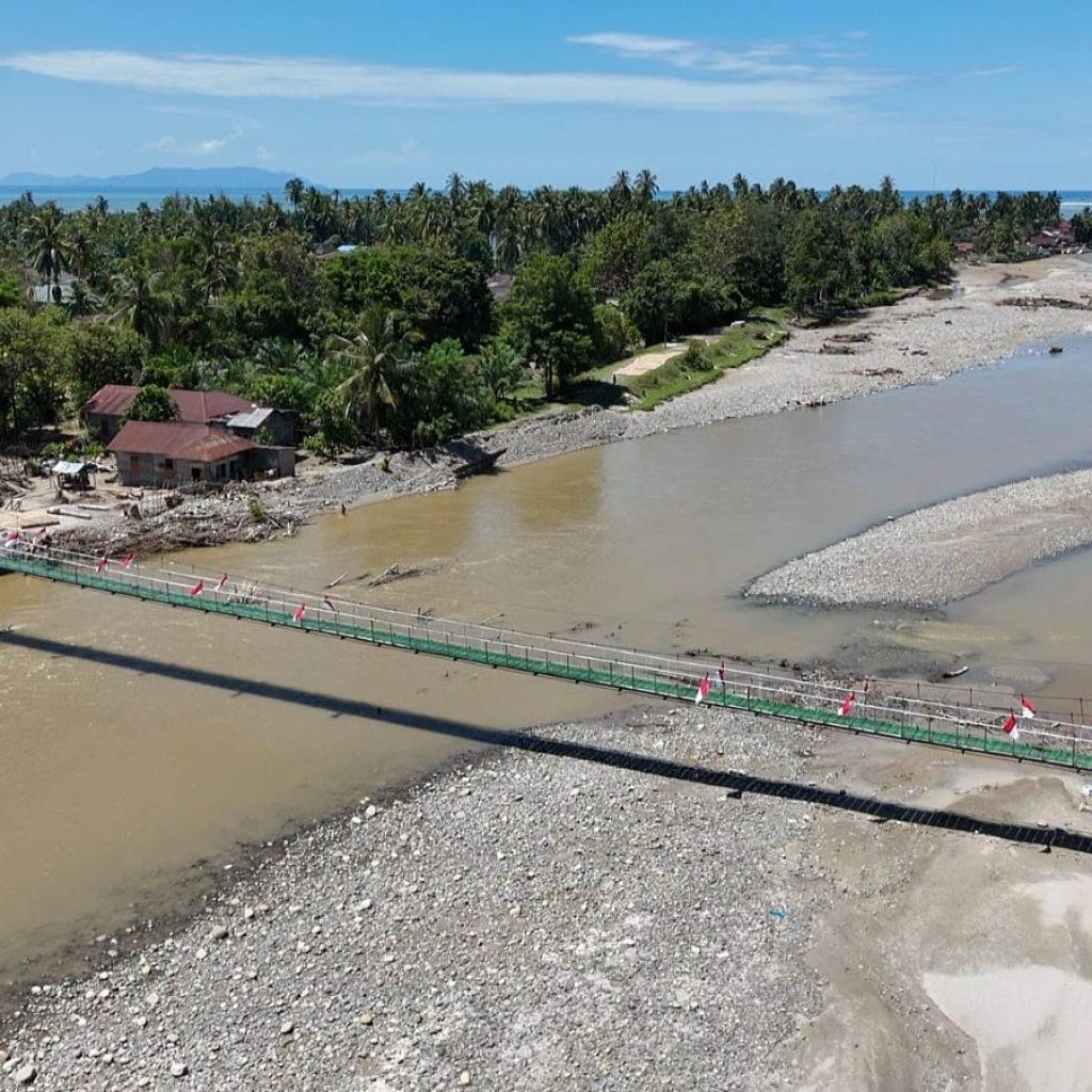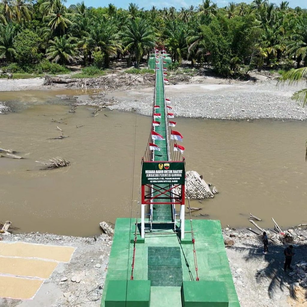 Tapanuli Tengah – Satgas Penanggulangan Bencana Alam (Gulbencal) Kodam I/Bukit Barisan merampungkan pembangunan Jembatan Perintis Garuda yang menghubungkan Kelurahan Padang Masiang dengan Kelurahan Ujung Batu, Kecamatan Barus, Senin (16/3/2026). Jembatan sepanjang 100 meter dengan lebar 1,2 meter tersebut kini telah selesai dikerjakan dan siap dimanfaatkan oleh masyarakat.