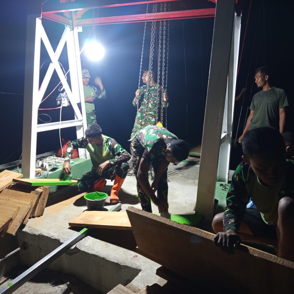 Pada tahap akhir pengerjaan, personel Satgas melaksanakan pemasangan papan lantai jembatan, pemasangan pagar pengaman, serta pengecatan lantai dan pagar jembatan guna memperkuat konstruksi sekaligus meningkatkan keamanan bagi masyarakat yang akan melintas.