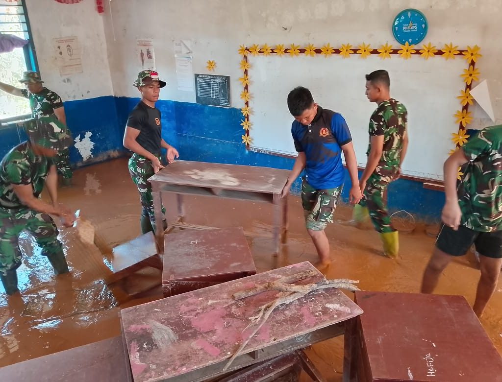Kegiatan tersebut dilaksanakan oleh personel Satgas Gulbencal Kodam I/BB yang terdiri dari Yonif 122/TS, Yonarhanud 11/WBY, Yon TP 905/TS, serta Babinsa Koramil 03/Pandan bersama pihak sekolah. Seluruh personel bergotong royong membersihkan lumpur di dalam ruangan kelas serta halaman luar bagian depan dan belakang sekolah, sekaligus melakukan pengecatan bangunan.