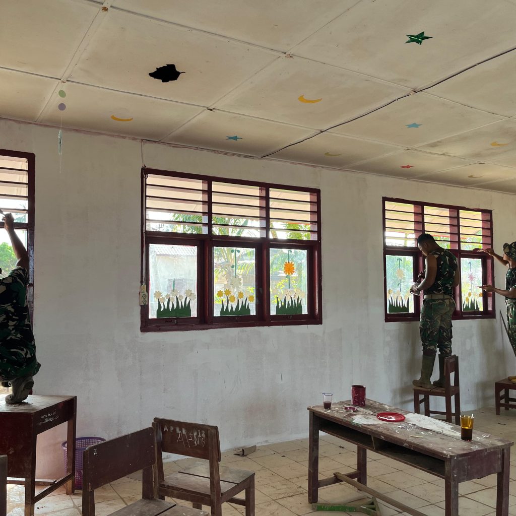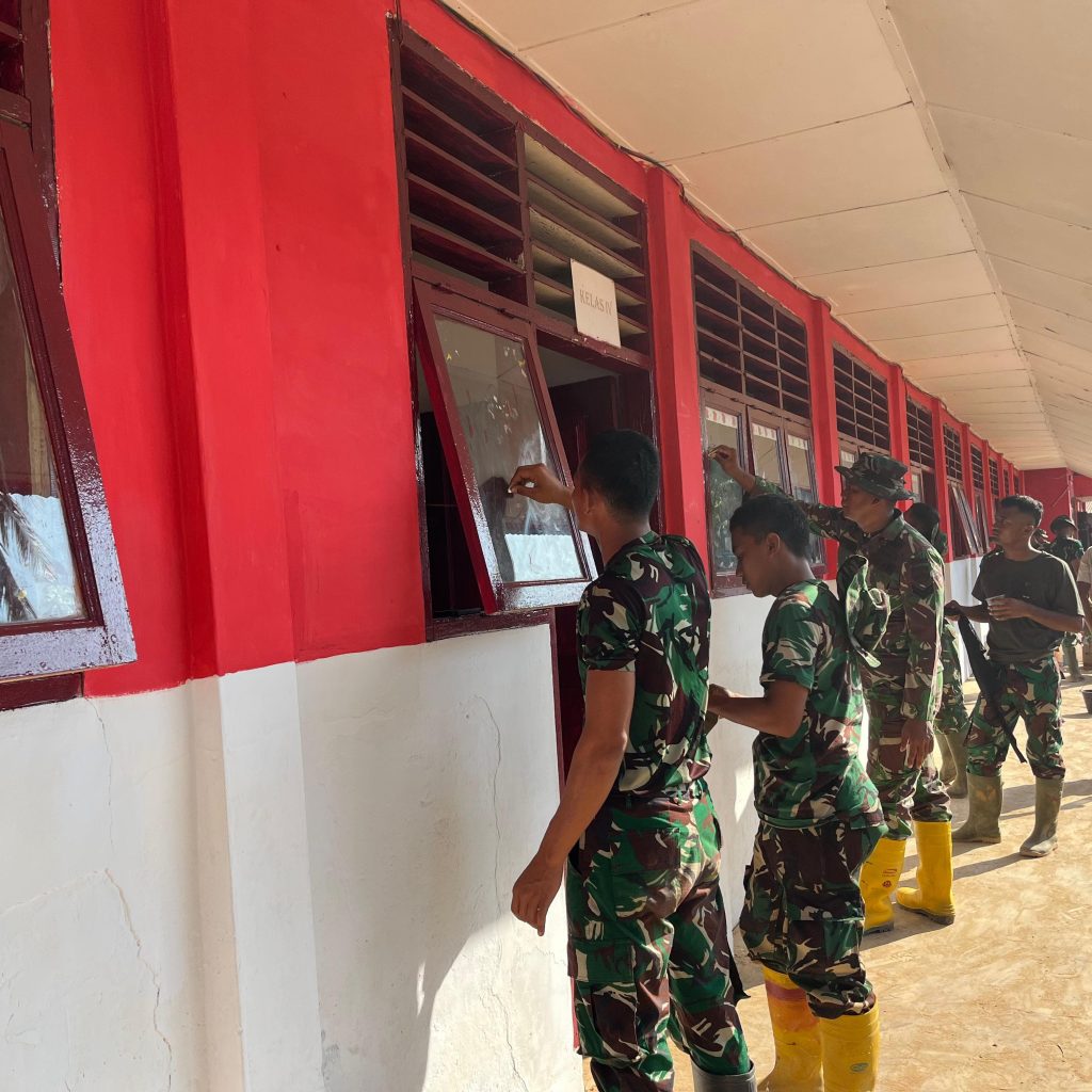 Adapun pekerjaan yang dilakukan meliputi pembersihan sisa material banjir dan lumpur, pengecatan dinding luar dan dalam sekolah, plafon, pintu, kusen dan jendela, serta kursi dan meja siswa. Dalam pelaksanaannya, personel menggunakan berbagai peralatan seperti cangkul, sekop, sapu, ember, kuas cat, rol cat, serta didukung satu unit alat berat excavator mini Liugong 906 F untuk mempercepat proses pembersihan material lumpur di area halaman sekolah.