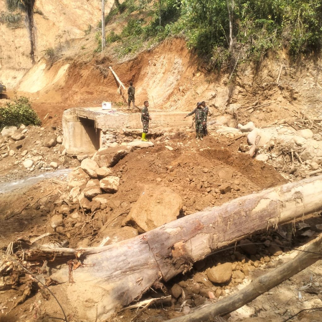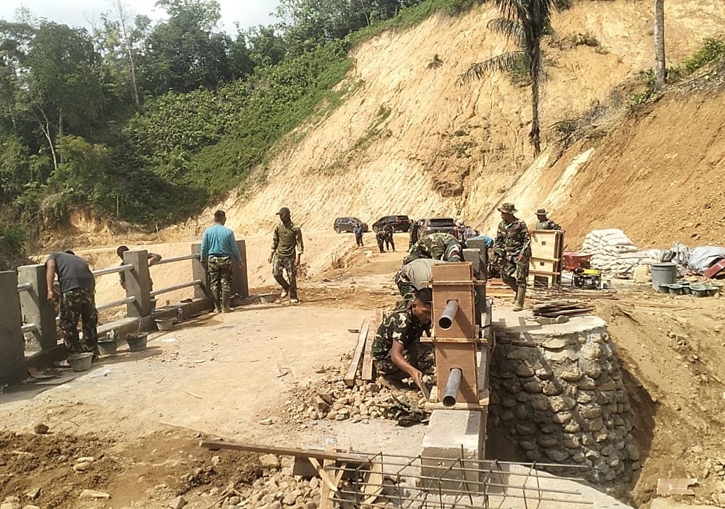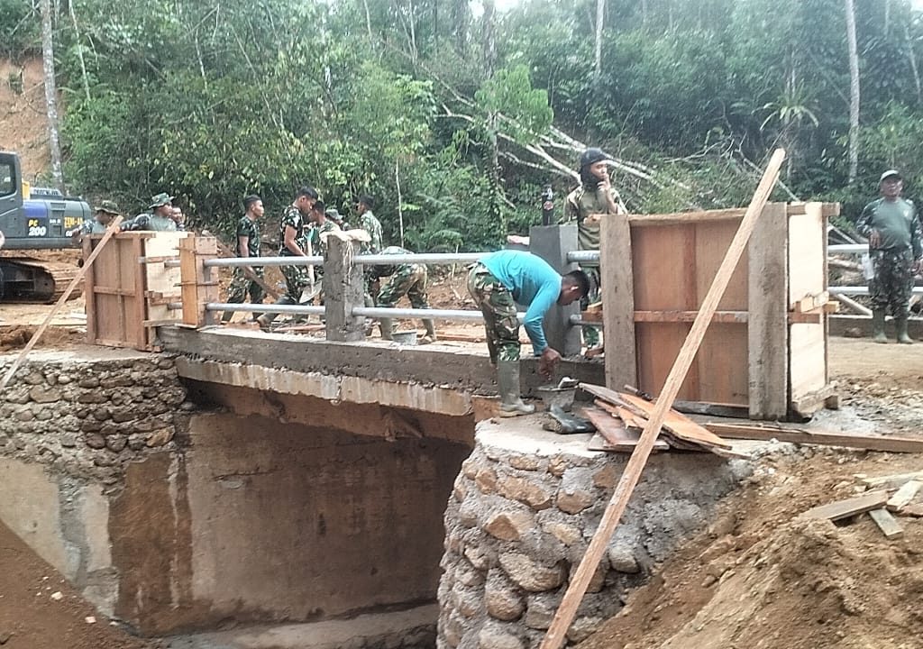 Adapun pekerjaan perbaikan jembatan dilaksanakan oleh personel Kodim 0211/Tapanuli Tengah bersama Yon TP 908/GD, Yon Zipur II/DD, Yon Zipur XI/DW, serta Zidam I/BB, meliputi pengacian tiang pagar jembatan, pengecekan pion dan pagar jembatan, serta pemasangan delapan bendera Merah Putih di sepanjang jembatan.