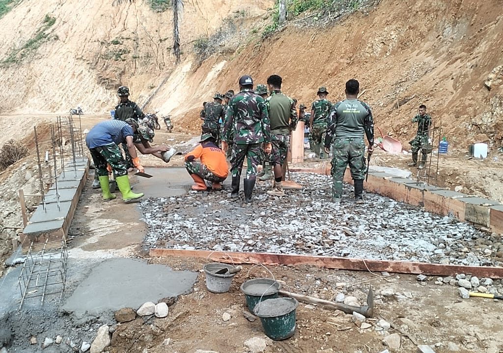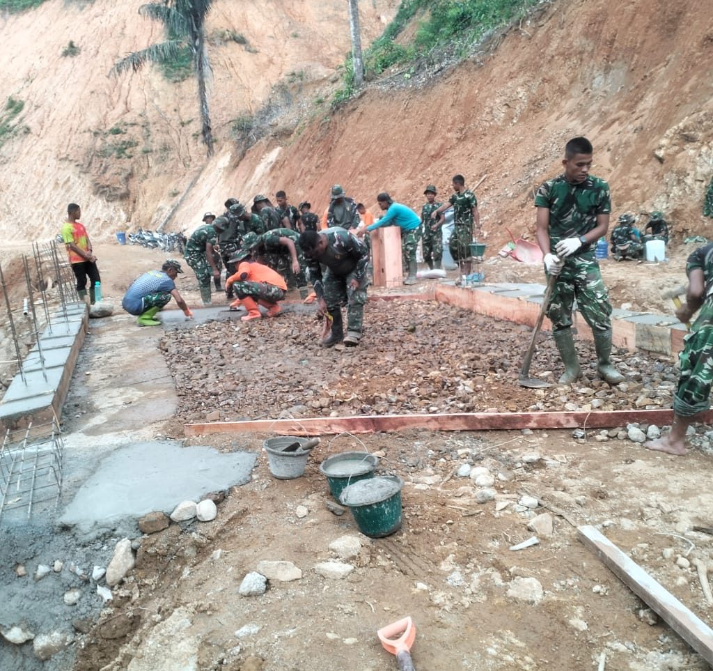 Tapanuli Tengah — Satgas Penanggulangan Bencana Alam (Gulbencal) Kodam I/Bukit Barisan merampungkan perbaikan Jembatan Beton Titik III di Sungai Sigiring Giring, Lingkungan IV Kelurahan Hutanabolon, Kecamatan Tukka, Kabupaten Tapanuli Tengah, Senin (2/2/2026).
