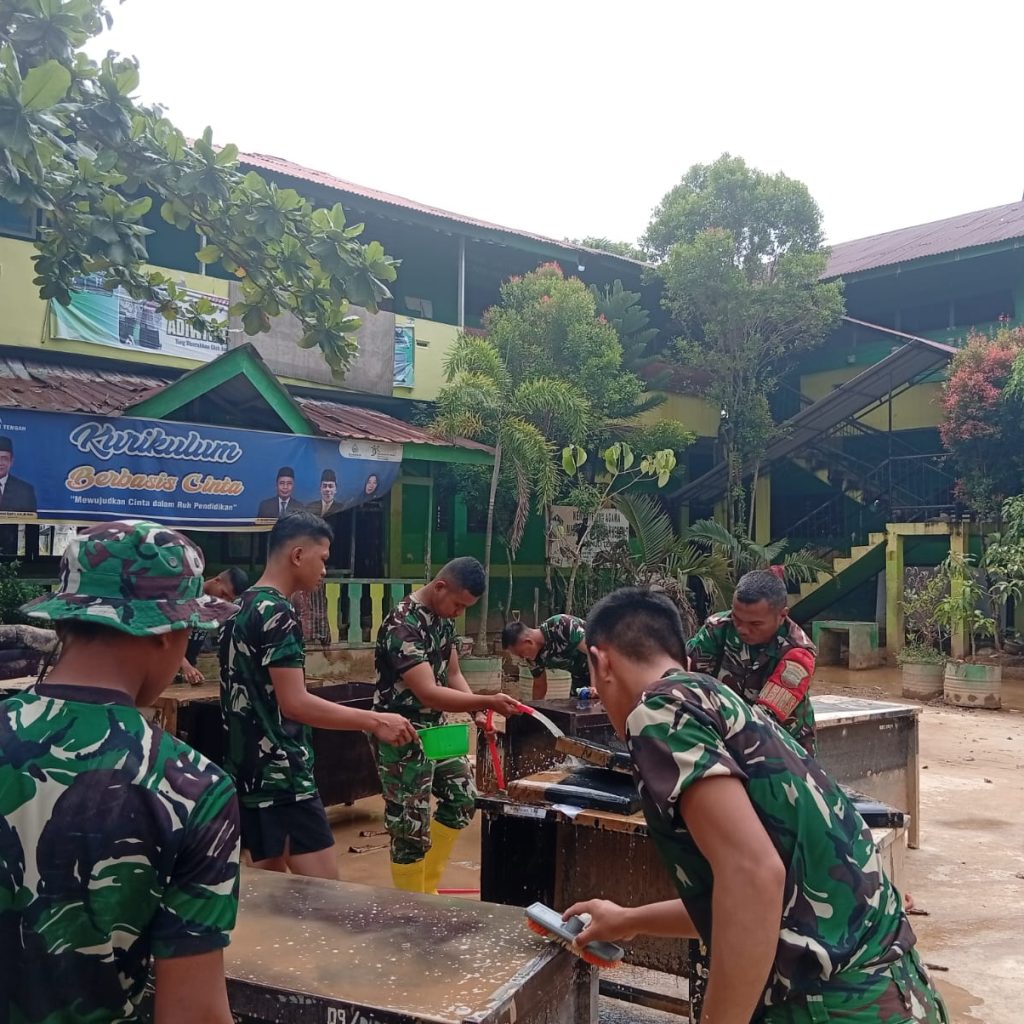 Satgas Gulbencal Kodam I/BB Tuntaskan Pembersihan SD MIN 7 Sibuluan Nalambok Pascabencana Banjir dan Tanah Longsor