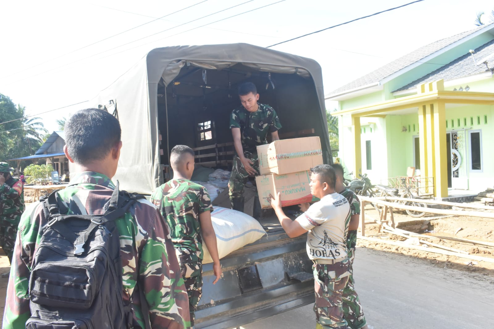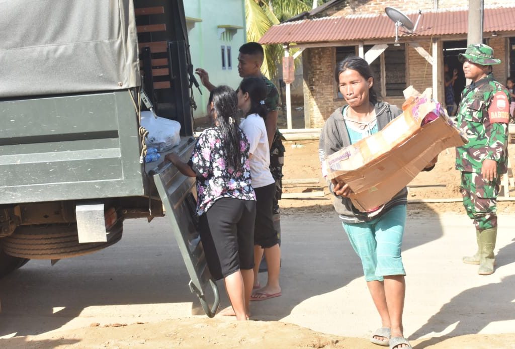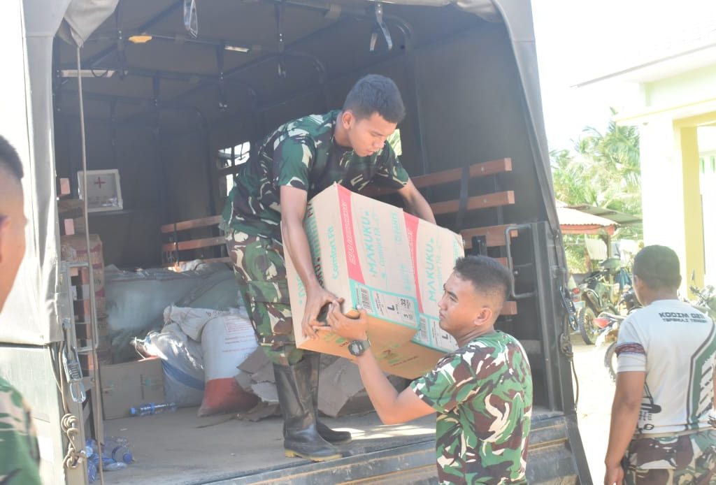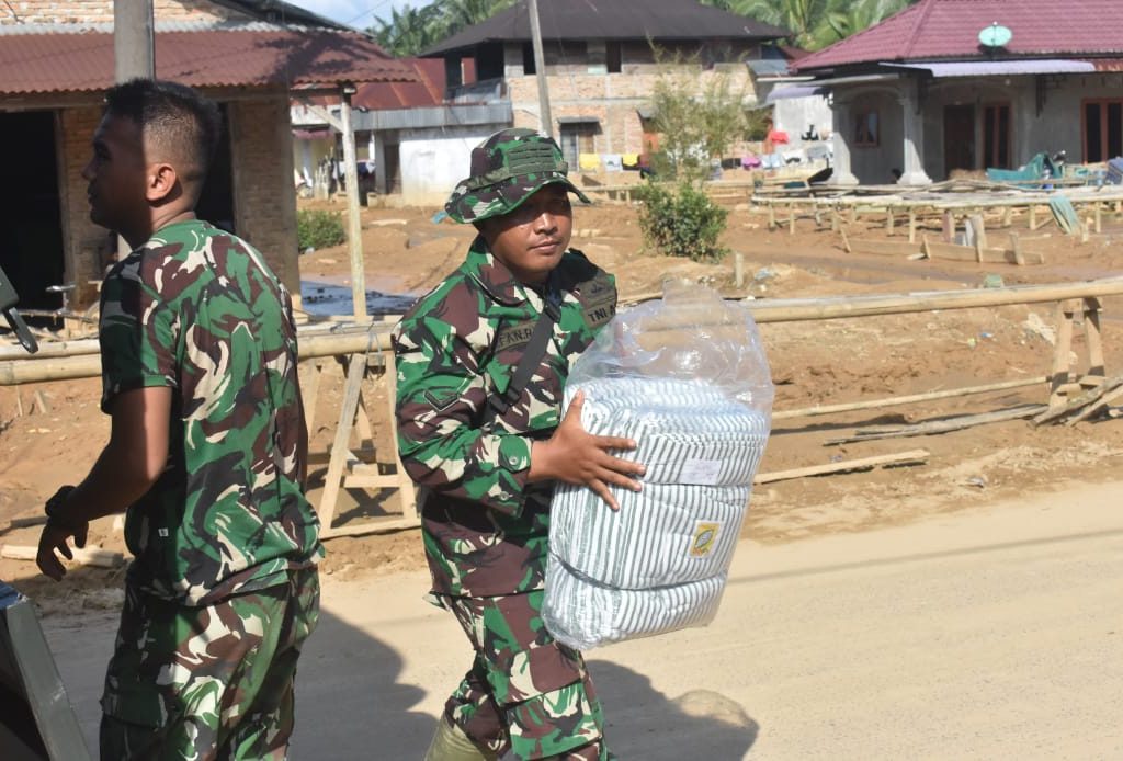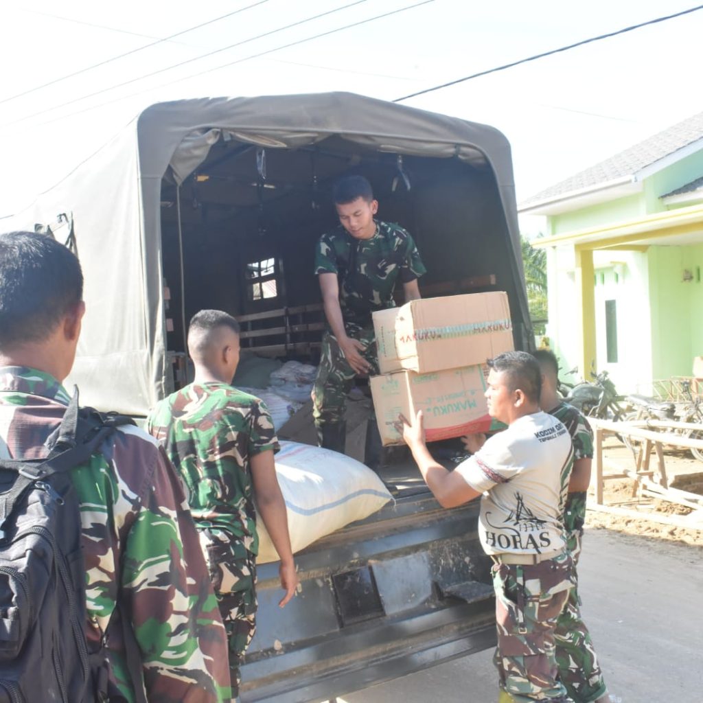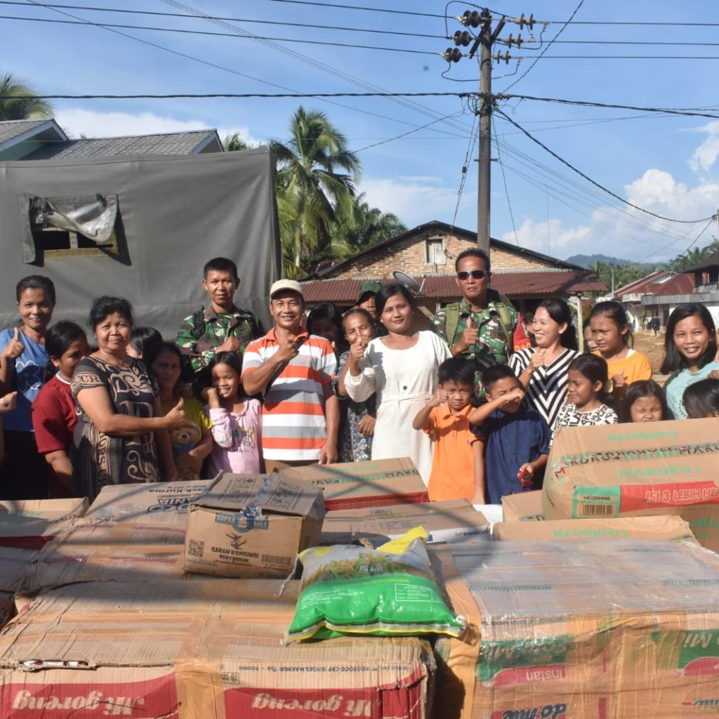 Tapanuli Tengah — Satgas Penanggulangan Bencana Alam (Gulbencal) Kodim 0211/Tapanuli Tengah menyalurkan dukungan bantuan sosial (bansos) kepada masyarakat terdampak bencana alam di Lingkungan 111, Kelurahan Lopian, Kecamatan Badiri, Kabupaten Tapanuli Tengah, Minggu (5/1/2026).