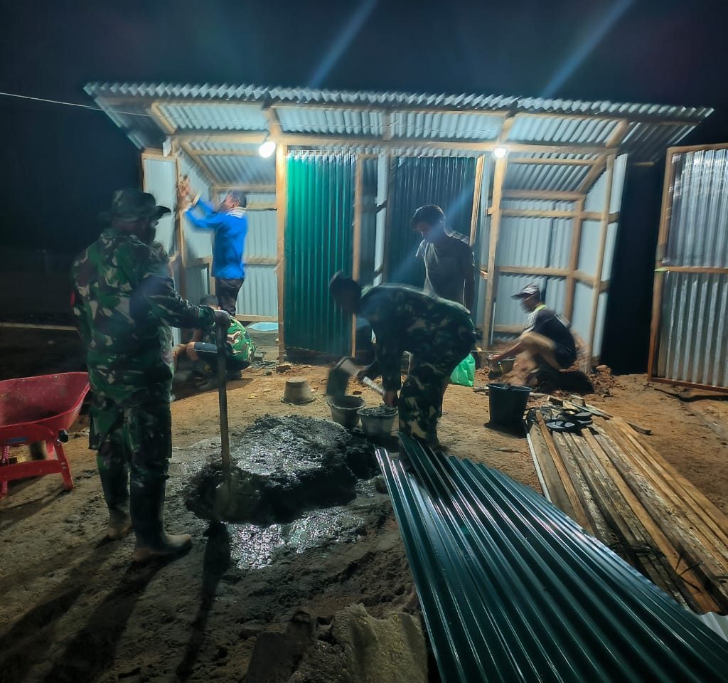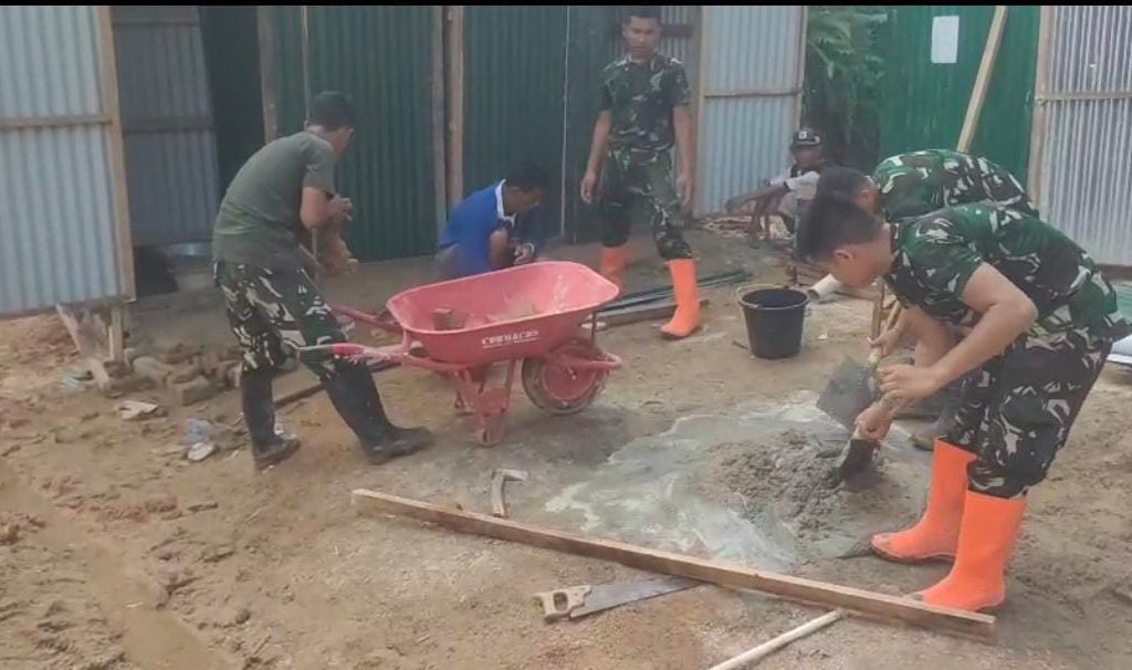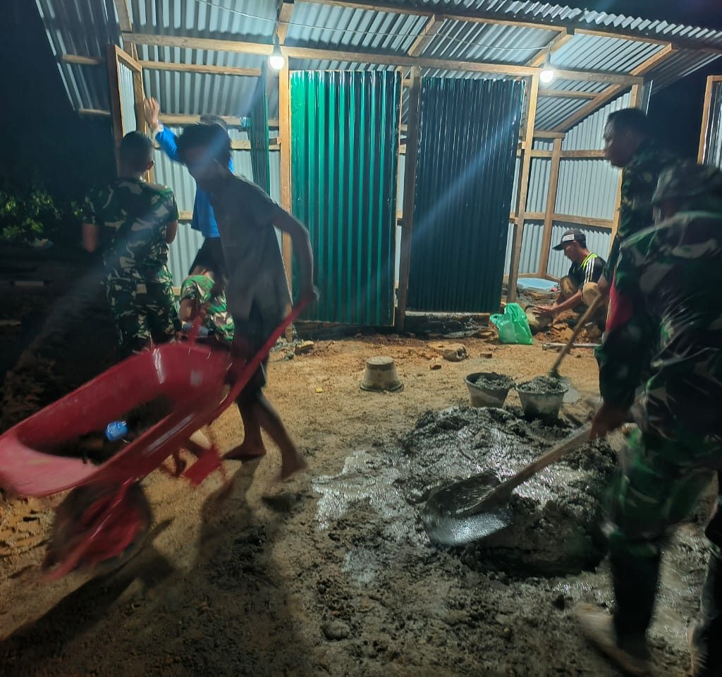 Kegiatan difokuskan pada pemasangan pipa, pelapisan lantai kamar MCK, serta pelapisan lantai bagian depan bangunan. Seluruh pekerjaan dilaksanakan secara gotong royong oleh Babinsa Koramil 03/Pandan dan personel Yon TP 905/TS.