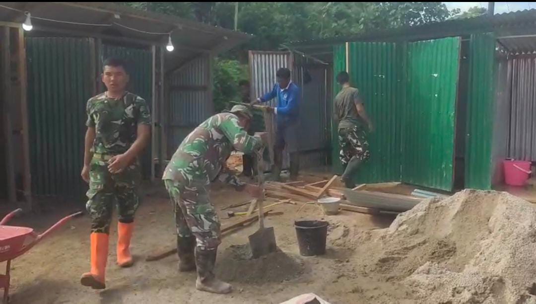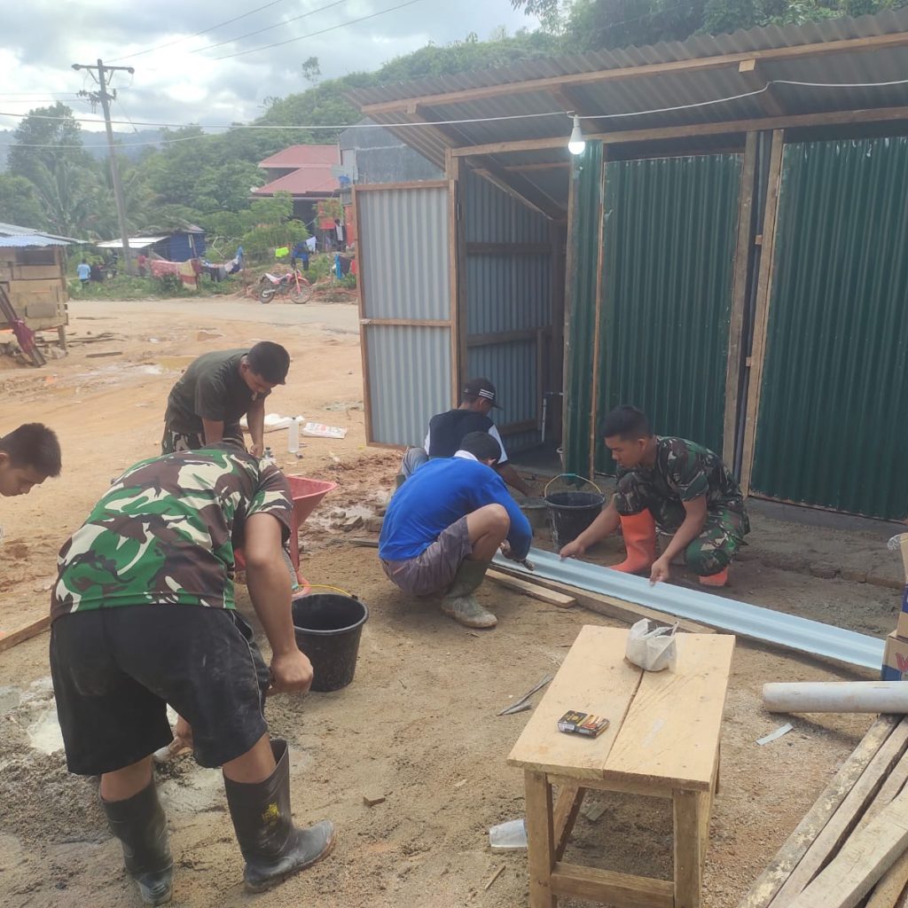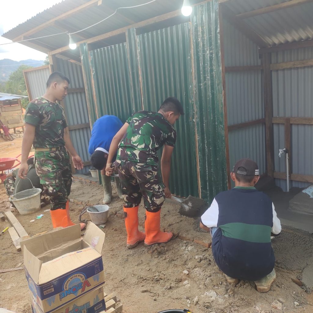 Tapanuli Tengah – Satgas Gulbencal Kodim 0211/Tapanuli Tengah melalui Babinsa Koramil 03/Pandan dan personel Yon TP 905/TS melanjutkan pembangunan fasilitas MCK di pengungsian Simpang Sipange, Kelurahan Tukka, Kecamatan Tukka, Kamis (8/1/2026).