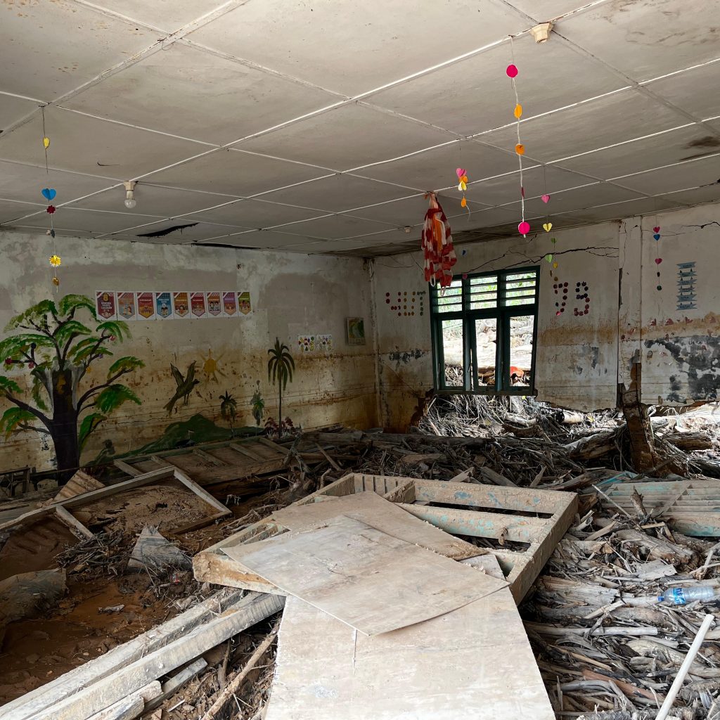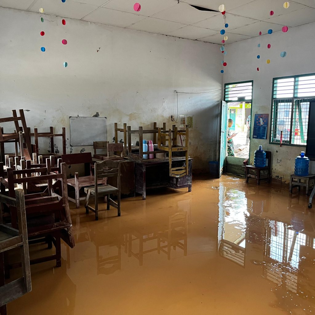 Kegiatan ini merupakan tahap lanjutan proses pemulihan fasilitas pendidikan yang sebelumnya telah dibersihkan, namun terdampak kembali oleh genangan air dan material lumpur yang terbawa aliran banjir. Fokus pekerjaan diarahkan pada normalisasi halaman dan ruang lingkungan sekolah agar kembali aman dan layak digunakan.