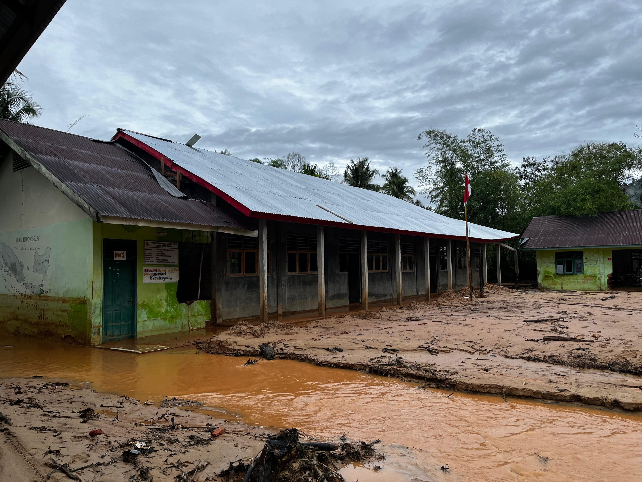 Kegiatan ini merupakan tahap lanjutan proses pemulihan fasilitas pendidikan yang sebelumnya telah dibersihkan, namun terdampak kembali oleh genangan air dan material lumpur yang terbawa aliran banjir. Fokus pekerjaan diarahkan pada normalisasi halaman dan ruang lingkungan sekolah agar kembali aman dan layak digunakan.
