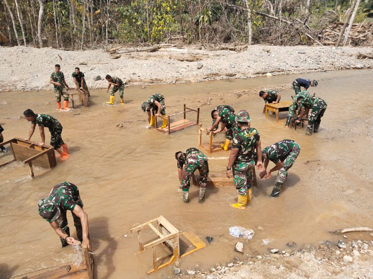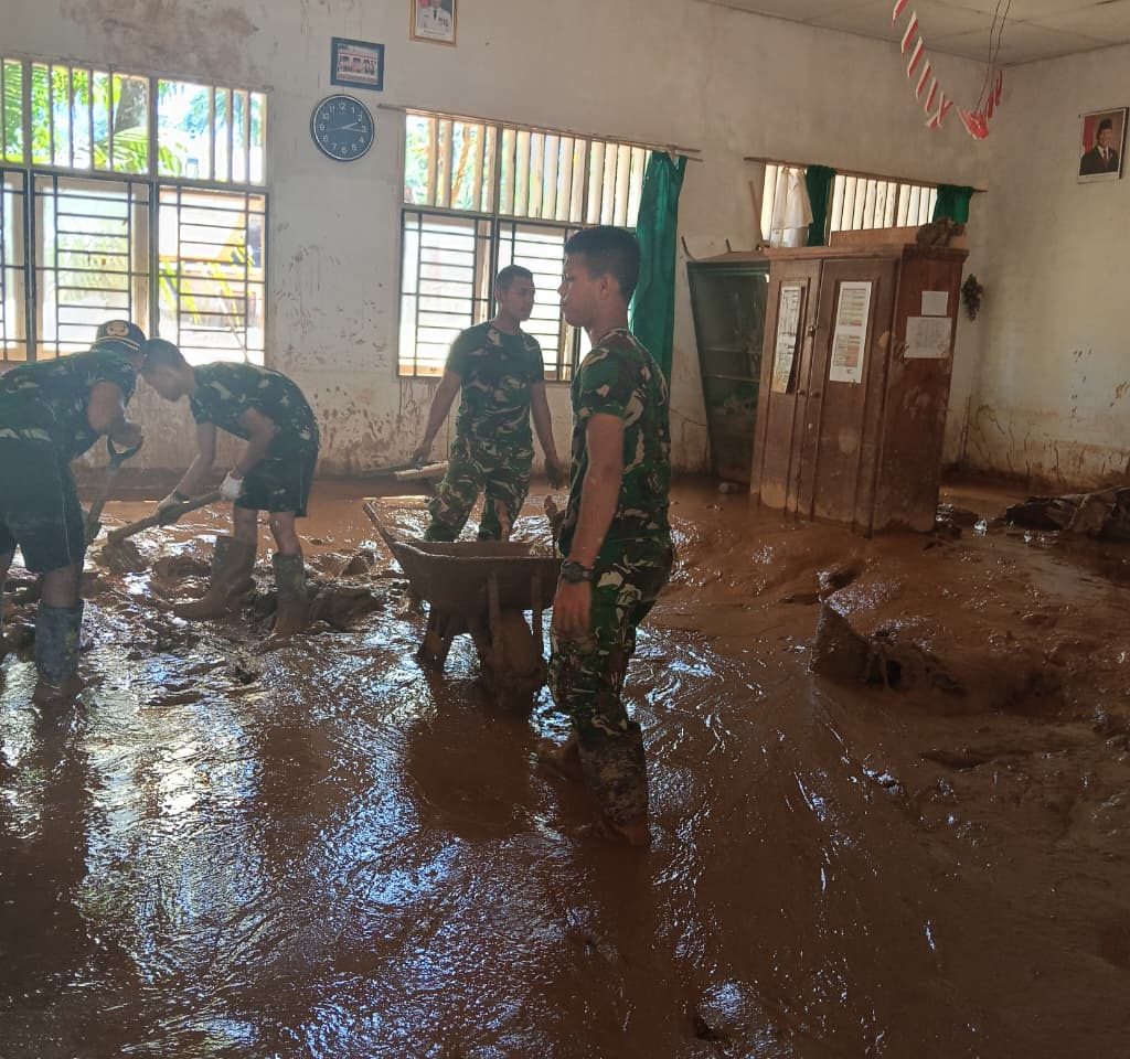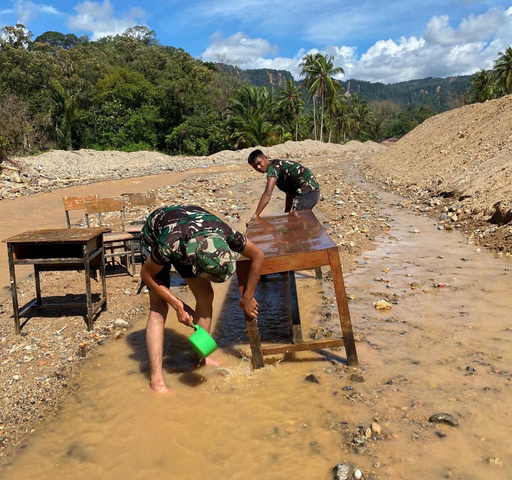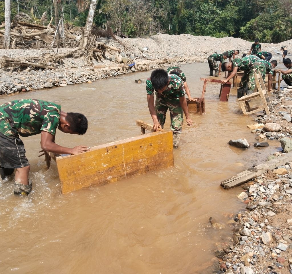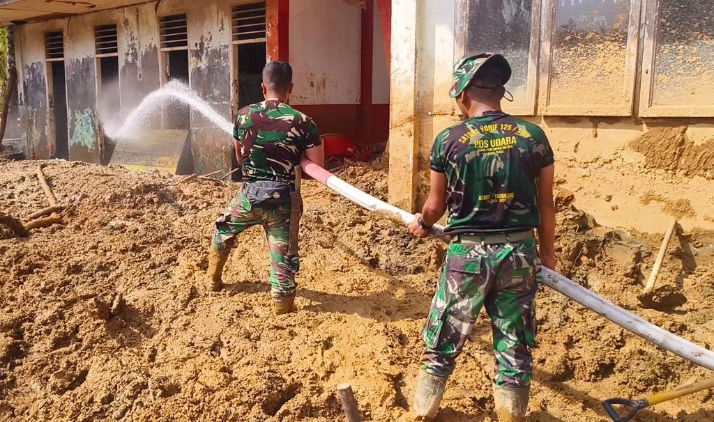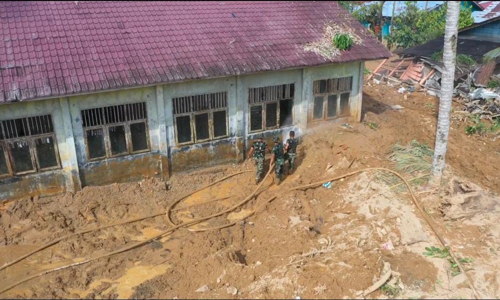Satgas Gulbencal TNI Percepat Pembersihan SDN 155678 Hutanabolon 2 Pascatanah Longsor