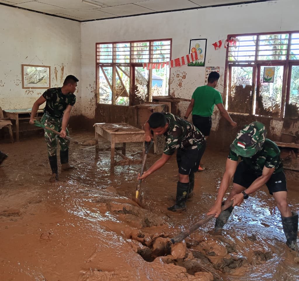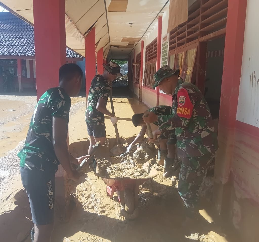 Kegiatan ini melibatkan personel dari Kodim 0211/TT, Yon Arhanud 11/WBY, Yon TP, dan Yonif 125/Simbisa sebagai bentuk sinergi TNI dalam memulihkan fasilitas pendidikan pascabencana.