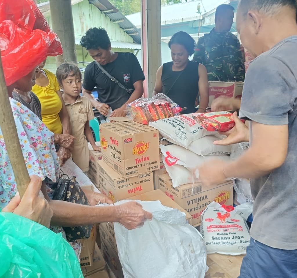 Bantuan yang dikirimkan meliputi air mineral pertalite(BBM), susu, mi instan, biskuit, sarden serta selimut. Setelah diturunkan, barang bantuan langsung diamankan oleh personel Satgas Gulbencal Yonif 125/SMB untuk kemudian didistribusikan secara bertahap kepada masyarakat di lokasi terdampak.