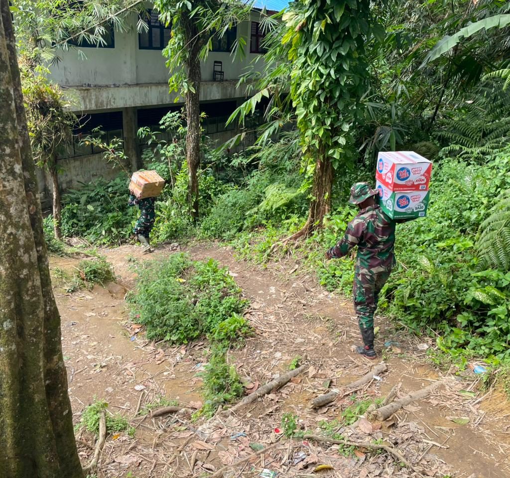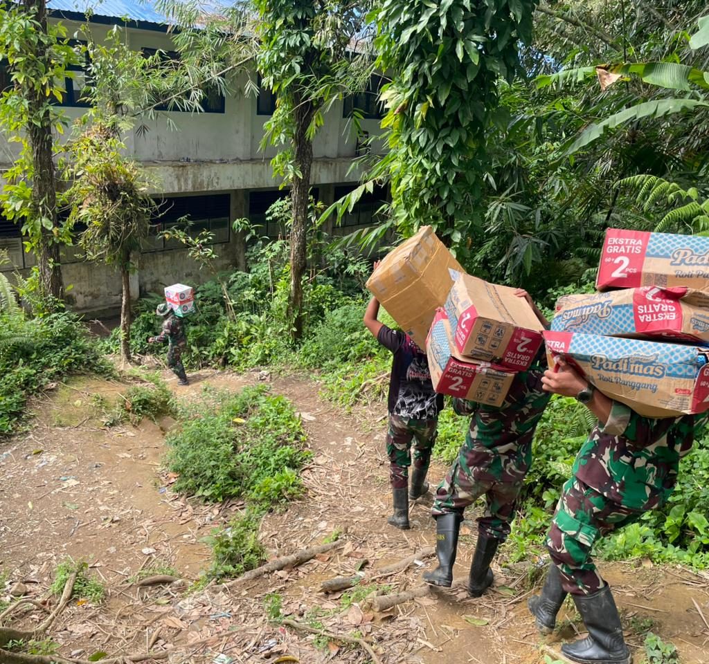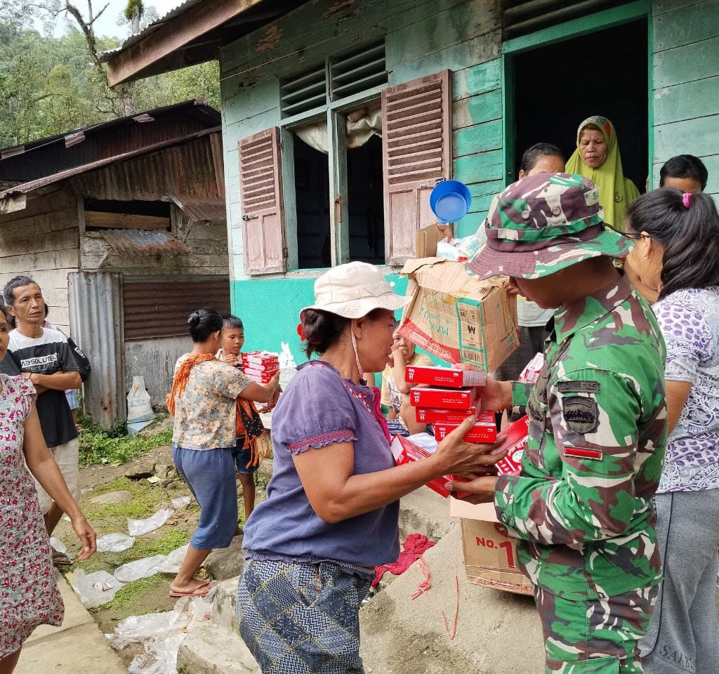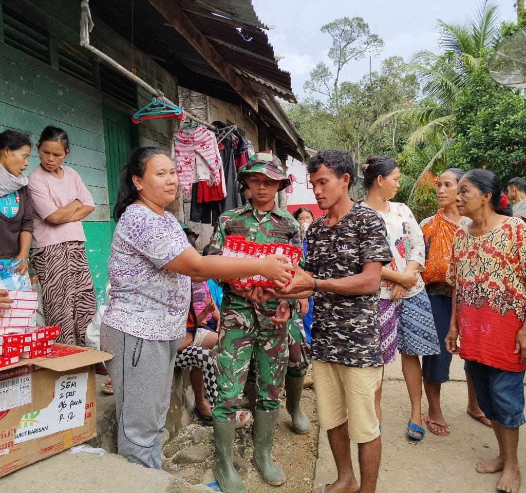 Tapanuli Tengah — Personel Satgas Gulbencal Yonif 122/TS melaksanakan kegiatan pengedropan dan pembagian logistik kepada masyarakat terdampak bencana di Desa Nauli 2, Kecamatan Sitahuis, Kabupaten Tapanuli Tengah, Jumat (9/1/2026).