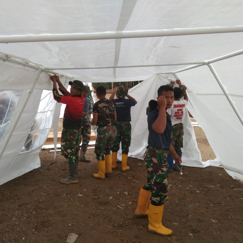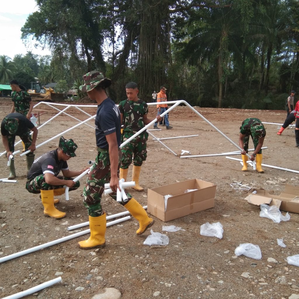 Tapanuli selatan – Satgas Kodim 0212/Tapanuli Selatan melalui Koramil 01/Batang Toru membantu pemasangan tenda hunian sementara (huntara) bagi warga terdampak bencana banjir dan tanah longsor di Desa Batu Hula, Kecamatan Batang Toru, Kabupaten Tapanuli Selatan, Kamis (8/1/2026). Huntara tersebut disiapkan untuk menampung warga yang rumahnya rusak atau tidak lagi layak huni akibat bencana alam.