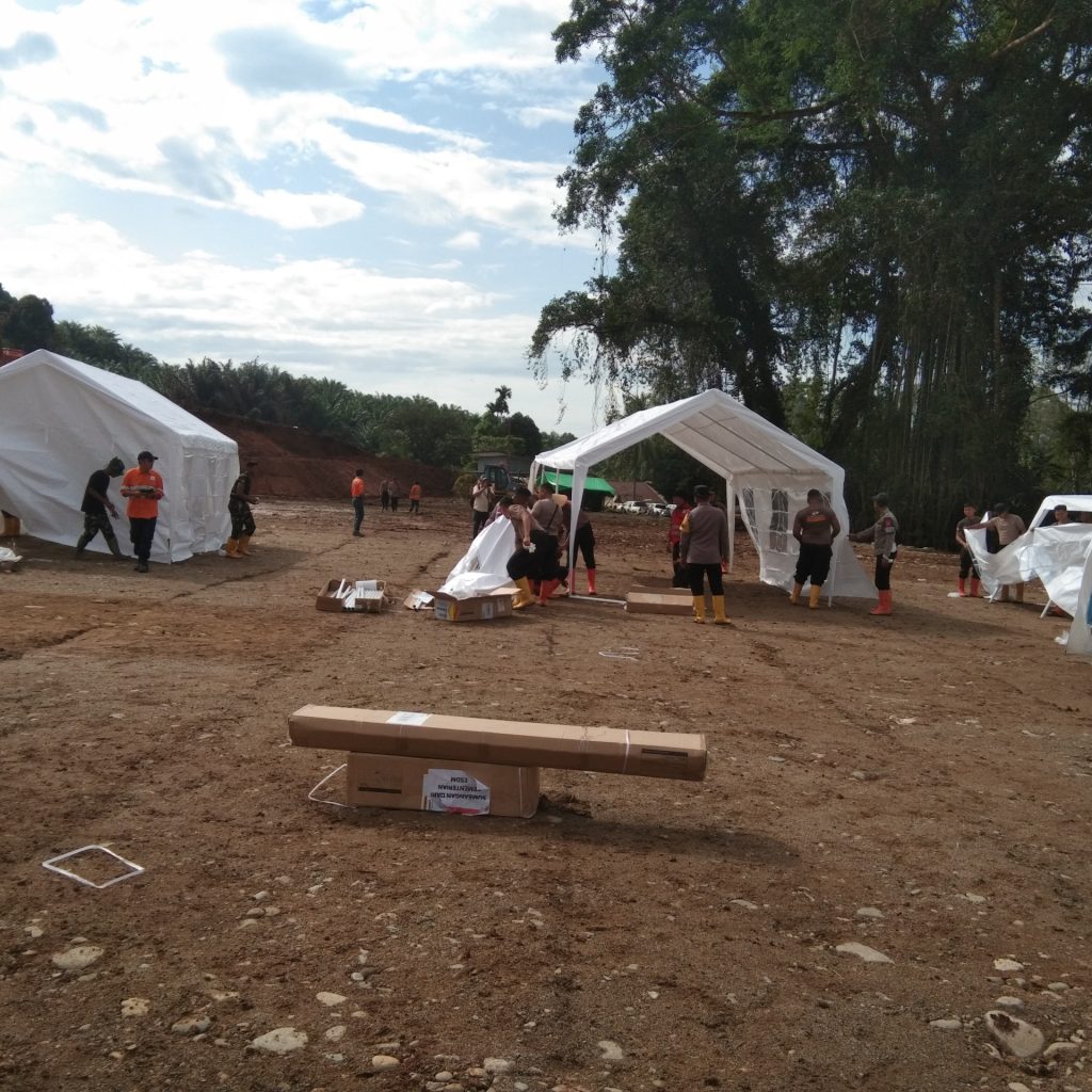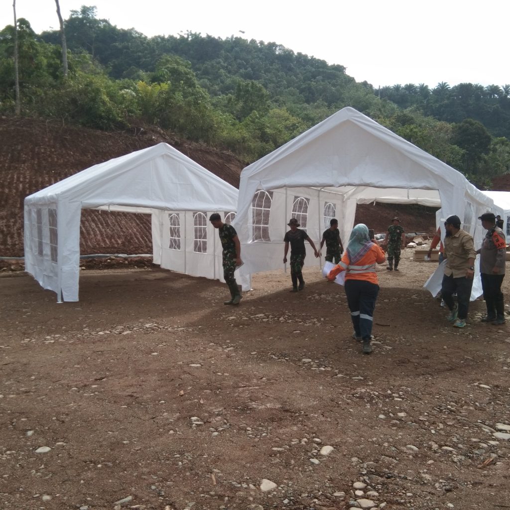 Lahan yang digunakan untuk lokasi hunian sementara merupakan milik masyarakat atas nama An Soltan Simangunsong yang dikuasakan kepada Safri Simamora dengan luas lahan yang telah dibuka mencapai 2,7 hektare. Hingga saat ini, progres pembukaan dan penataan lahan dilaporkan telah mencapai sekitar 80 persen, sementara pemasangan tenda hunian sementara yang terpasang mencapai 60 pasang dari total rencana 267 pasang dengan ukuran bervariasi.