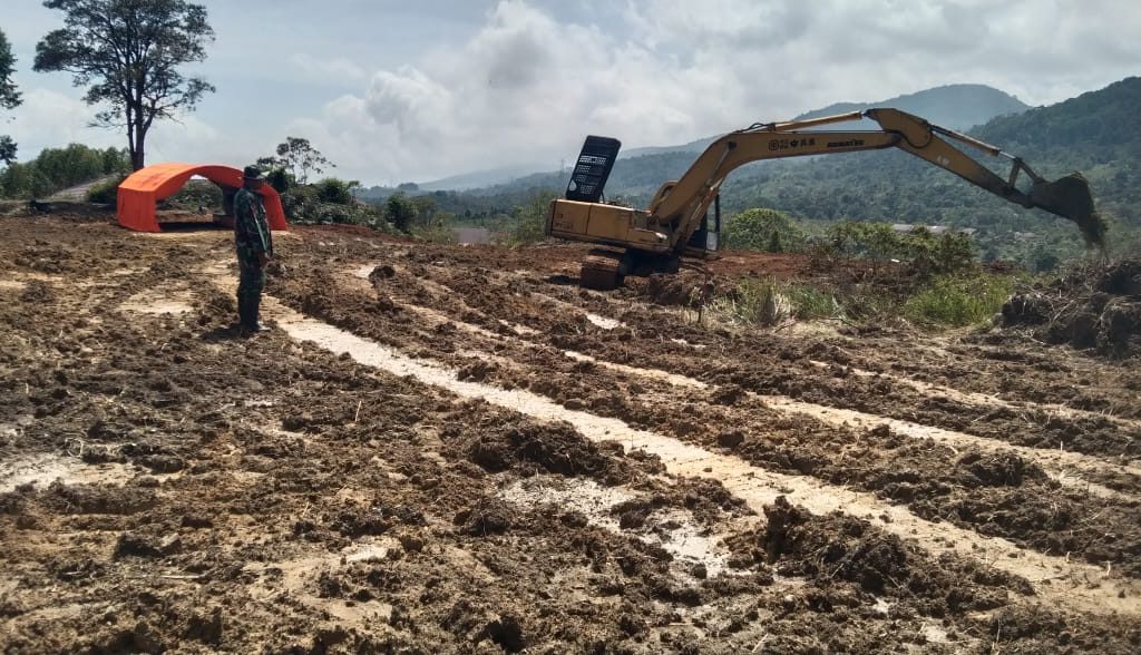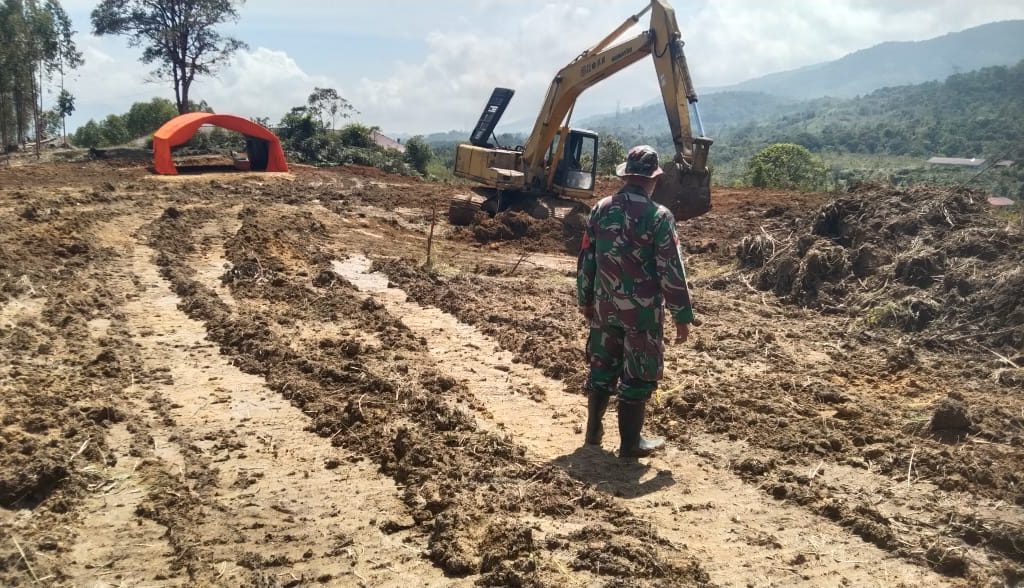 Tapanuli Selatan – Satgas Kodim 0212/Tapanuli Selatan (TS) melalui Koramil 03/Sipirok melaksanakan monitoring penyiapan lokasi hunian sementara (huntara) bagi warga pengungsi terdampak bencana banjir dan tanah longsor di sejumlah Dusun Aek Latong, Desa Marsada, Kecamatan Sipirok, Kabupaten Tapanuli Selatan, Minggu (4/1/2026). Lokasi huntara tersebut berada di lahan milik PT Toba Pulp Lestari yang penyiapannya dikerjakan oleh Pemerintah Daerah Kabupaten Tapanuli Selatan.
