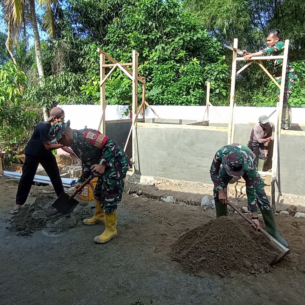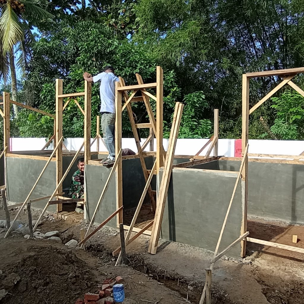 Tapanuli Selatan – Satgas Koramil 01/Batang Toru Kodim 0212/Tapanuli Selatan bersama masyarakat kembali membangun fasilitas mandi, cuci, kakus (MCK) darurat bagi pengungsi korban banjir bandang. Pembangunan dilakukan di depan SD Desa Aek Ngadol, Kecamatan Batang Toru, Kabupaten Tapanuli Selatan.