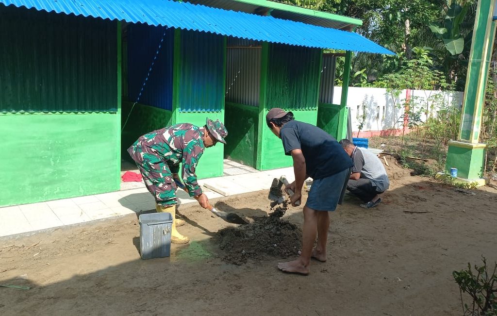 Satgas Koramil Batang Toru Percepat Pembangunan MCK Pengungsi di Aek Ngadol